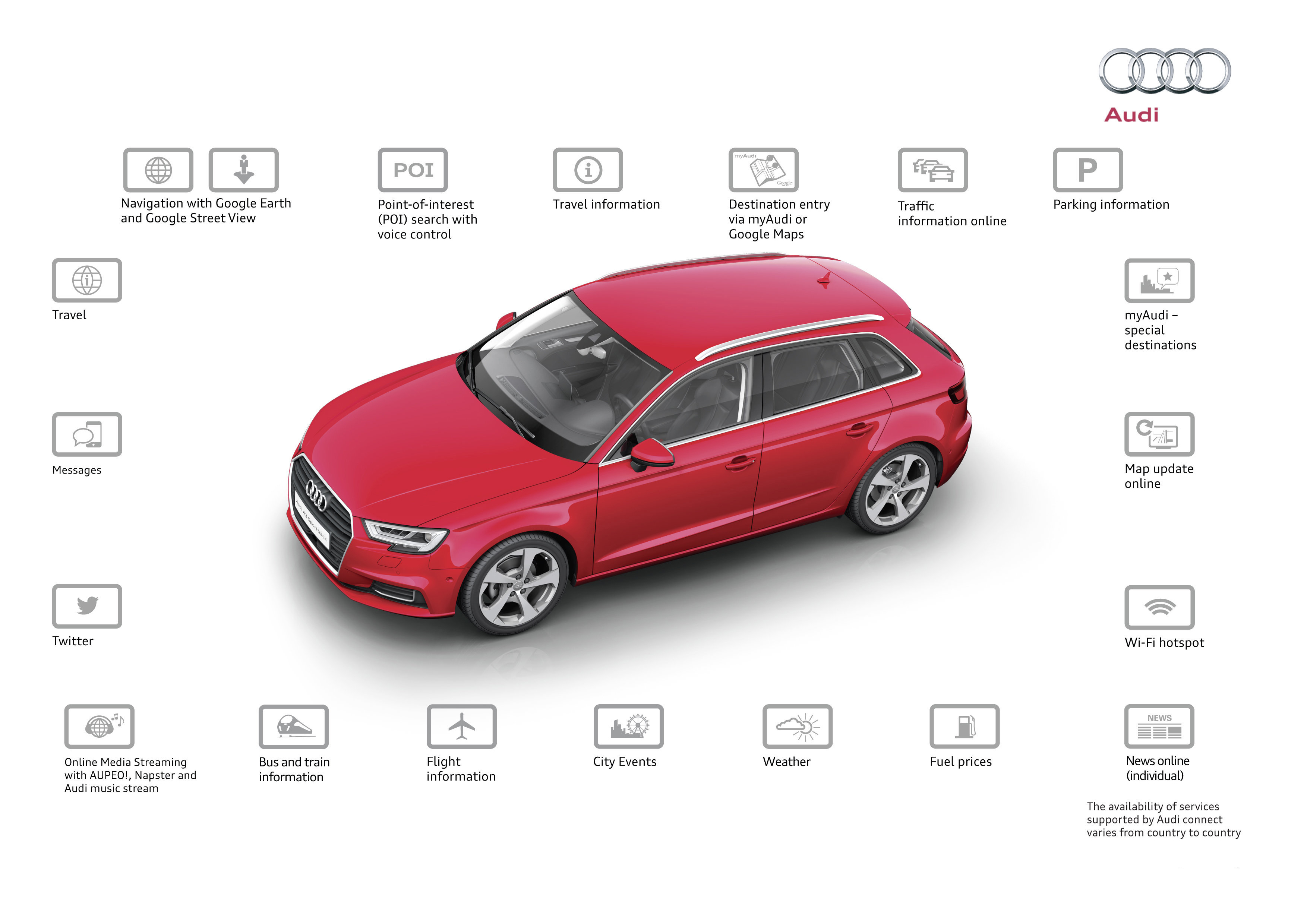 The Audi connect SIM is a permanently installed SIM card, known as an embedded SIM or eSIM, which customers in Europe will receive in combination with the optional Audi connect equipment package. This transforms the car into a mobile communication center. The SIM card brings Audi connect services on board via an LTE/UMTS module with a download speed of up to 100 MBit/s. Services include navigation with Google Earth and Google Street View, travel, traffic and parking information. In addition, drivers can access their Twitter and e-mail accounts and their smartphone’s calendar. The new SIM card contains an unlimited data volume for using these services. Another advantage: In most European countries, the Audi connect SIM automatically accesses the provider for each specific country, as needed. This eliminates high, country-specific roaming charges and inconvenient roaming confirmations for the customer.