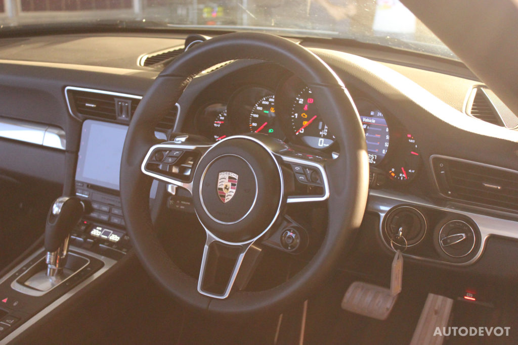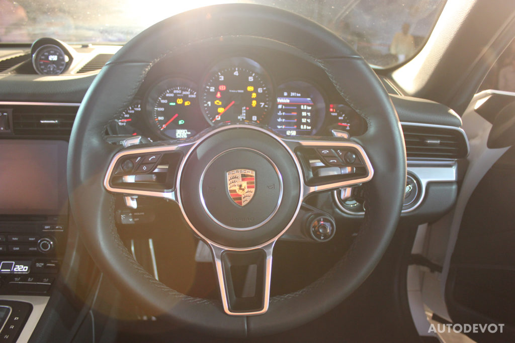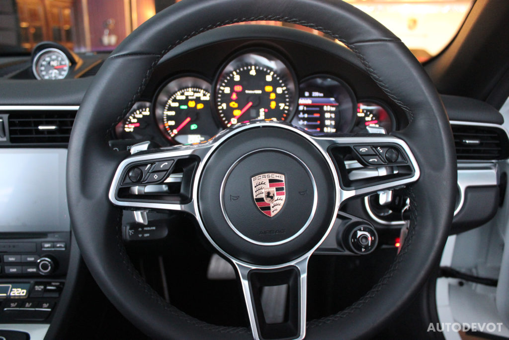 There’s this optional Sport Chrono Package and for the first time, all 911 models now have a mode switch on the steering wheel. Derived from the 918 Spyder, mode switch consists of a rotary ring with four positions for the driving modes “Normal”, “Sport”, “Sport Plus” and “Individual”. Depending on the equipment, the latter setting enables drivers to configure their own individual vehicle set-up. In combination with the PDK transmission, the mode switch has an additional push button, the “Sport Response Button”. When this button is pressed, the drivetrain is pre-conditioned for maximum acceleration for 20 seconds, a feature that can be deployed for overtaking manoeuvres.