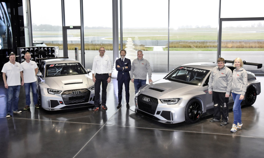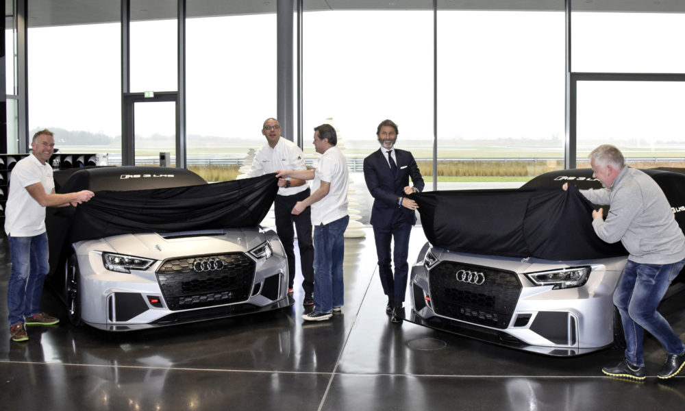 Audi Sport (formerly Quattro) starts delivering the Audi RS 3 LMS race cars to the customers. Available in three variants, the RS 3 LMS is a touring car that will participate in TCR International Series — an international Touring Car championship. The first two cars were delivered in Neuburg on Thursday by Stephan Winkelmann, Managing Director of Audi Sport, and Chris Reinke, Head of Audi Sport customer racing, to Cadspeed-Racing and Speed Factory Racing Team, whose season will start as early as in the middle of January 2017 in the 24-hour race in Dubai.