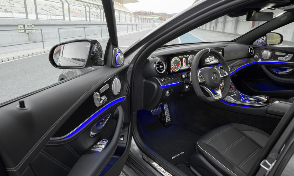 Mercedes-Benz recently unveiled the 2017 Mercedes-AMG E 63 4Matic and E 63 S 4Matic+ at the Los Angeles Auto Show. It’s the most powerful E-Class of all the time. Besides the design tweaks, the 4.0 litre V8 biturbo makes 571 hp @ 5750 – 6500 rpm and 750 Nm of torque @ 2250 – 5000 rpm in the E 63, and in the E 63 S it makes 612 hp @ 5750 – 6500 rpm and a jaw dropping 850 Nm of torque @ 2500 – 4500 rpm. Both are mated to AMG Speedshift MCT 9-speed sports transmission (multi clutch).
