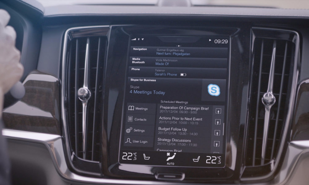 Volvo Cars has announced it’ll add Microsoft’s “collaborative productivity app” Skype to its 90 Series cars, that is XC90, S90 and V90, thus becoming the first carmaker to launch such an in-car productivity tool. In Volvo’s 90 Series cars, owners will be able to view their upcoming meetings and participant details, and join meetings with one click via the popular tablet style center display.