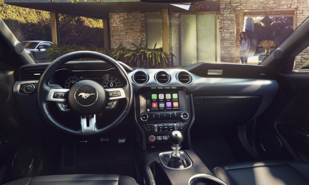 On the performance side, the 2.3-litre 4-cylinder EcoBoost engine has been reworked for more torque. The 5.0 V8 has been reworked as well, and it now revs higher than any Mustang GT before. This engine gets high-pressure direct injection and low-pressure port fuel injection, and a compression ratio increase from 11:1 to 12:1, resulting in low-end torque, high-rpm power, and improved fuel efficiency. Power, torque and efficiency figures are yet to be released. Both engines can be had with a new 10-speed automatic transmission.