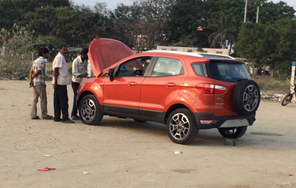 There were reports recently that Ford EcoSport will get minor updates for India, with the addition of a touchscreen infotainment system and deletion of several features. The updated EcoSport has been spotted by a member of Ford Ecosport Owners & Fan Club Facebook group, revealing the infotainment system and new alloy wheel design.