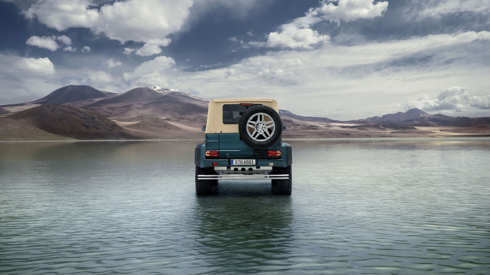 The 22-inch 5-twin-spoke light-alloy wheels carry LANDAULET lettering on the rim flanges, and wear a super wide 325/55 tyres.