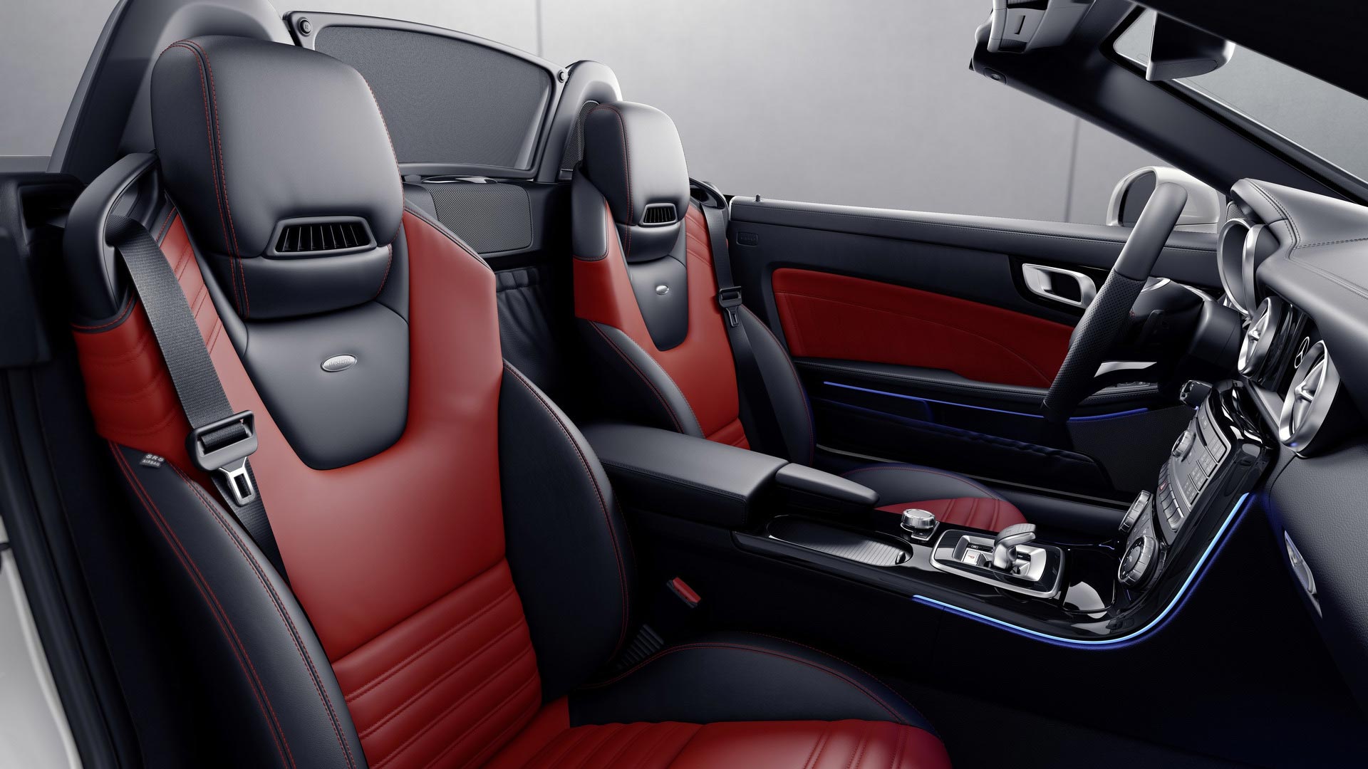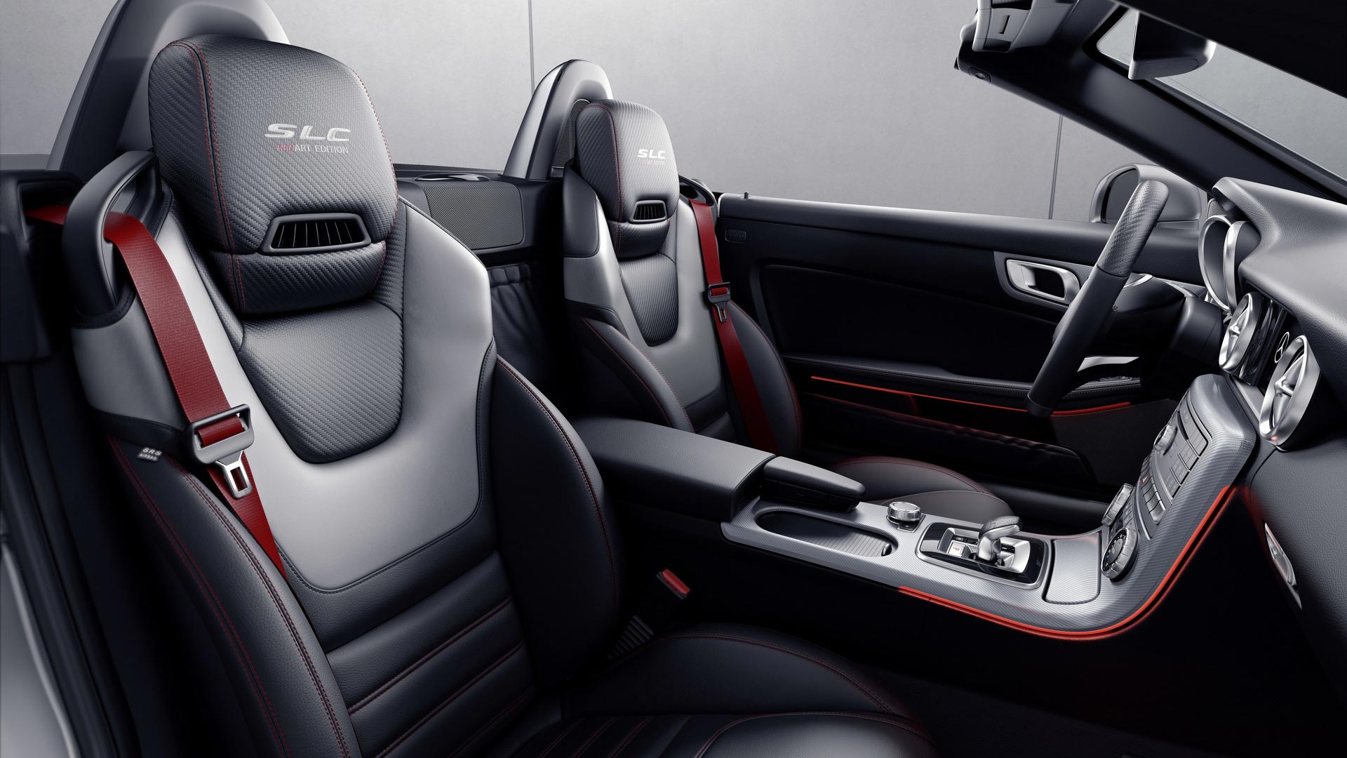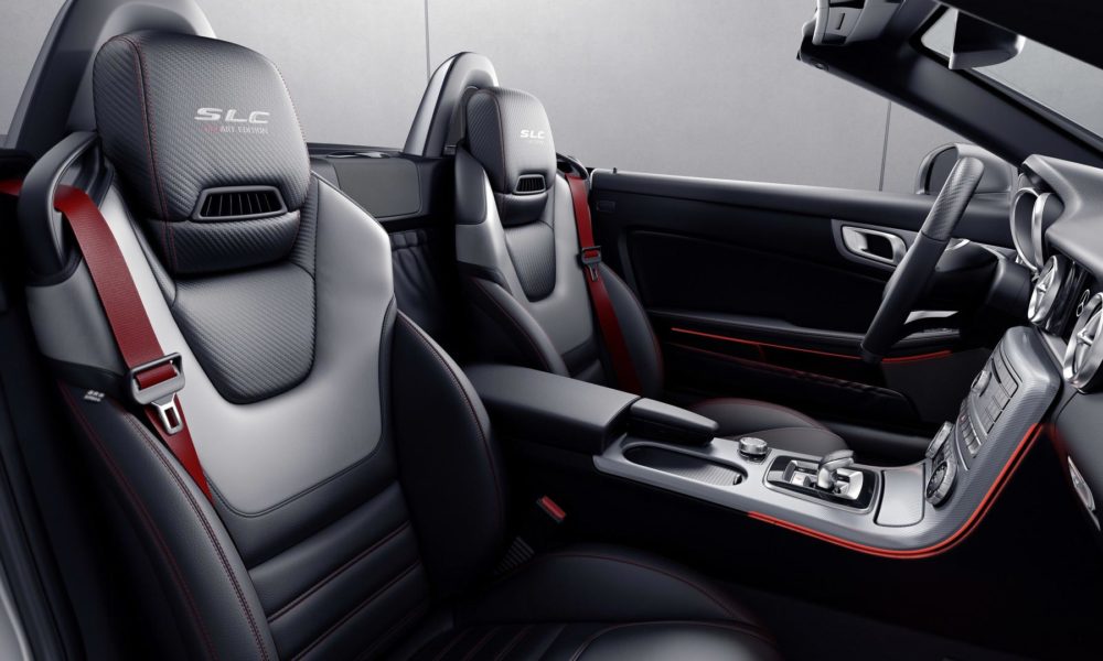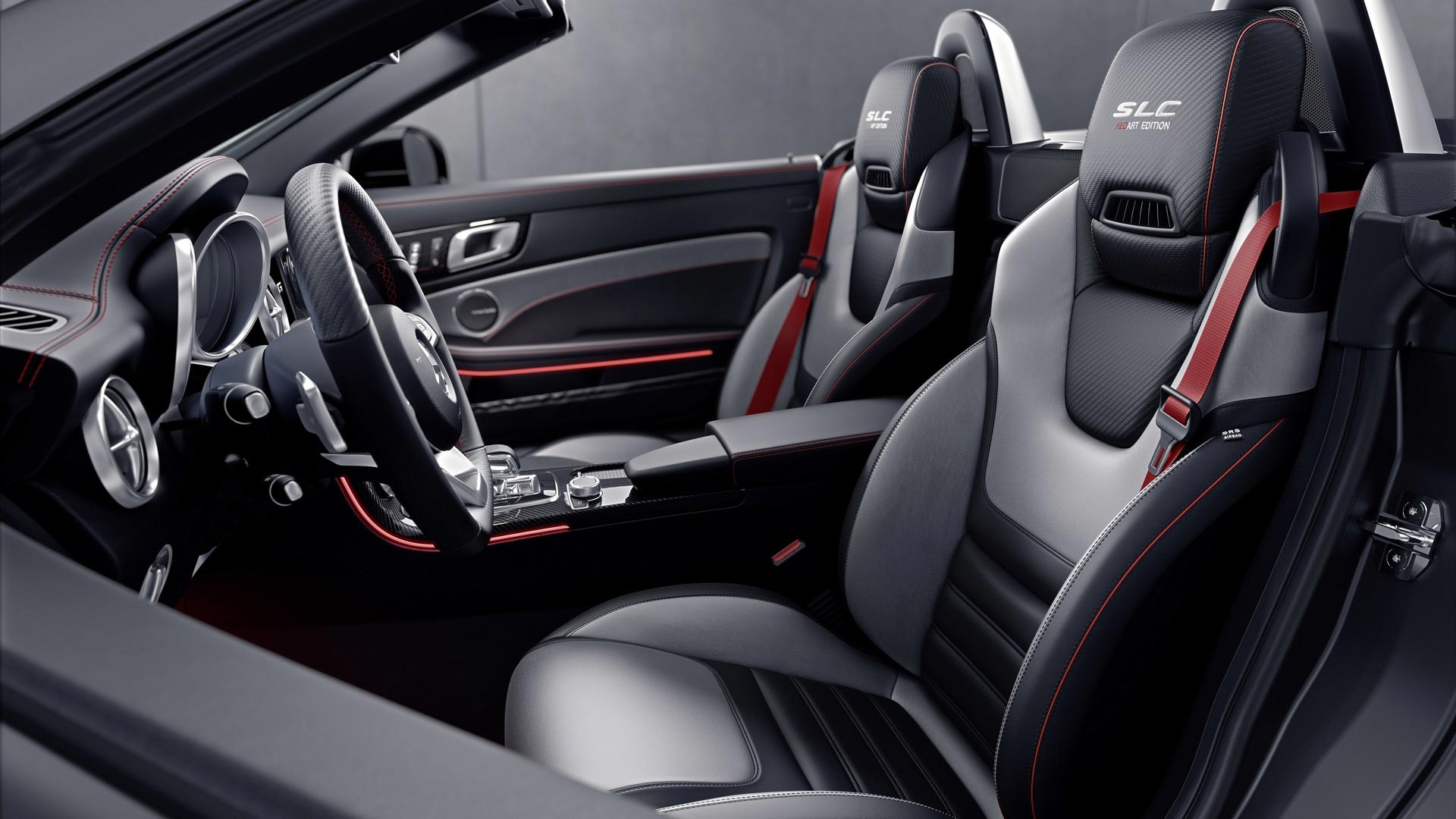 The RedArt Edition can be had with any engine option, even with the entry-level SLC 180 or with the AMG SLC 43. The four-cylinder SLC 180, SLC 200, SLC 250d and SLC 300 models are available in an exclusive designo iridium silver magno matt finish. The AMG 43 variant gets an exclusive designo selenite grey magno finish. Alternatively, customers can choose from six other colours. Styling elements on the exterior include the red front splitter, diamond radiator grille with pins in red and black, red fins in the wings with an exclusive Edition badge, red flics in the AMG bumper and the diffuser with red trim. While the regular SLC gets 18-inch 5-twin-spoke light-alloy wheels painted in tremolite metallic with a high-sheen finish, the AMG gets 18-inch 10-spoke light-alloy wheels painted in high-gloss black with red rim flange. Both get red brake calipers.