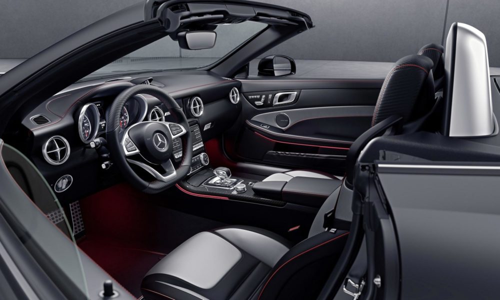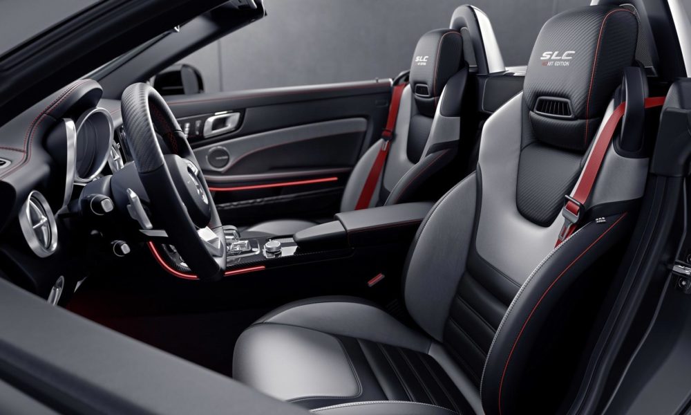 On the inside, the SLC RedArt Edition gets an exclusive black leather upholstery with silver pearl nappa leather inserts with red contrasting stitching and the Edition logo embroidered on the head restraint. There are carbon-embossed leather on the head restraints, sports steering wheel and on the DYNAMIC SELECT selector lever to ensure sporty highlights. Two-tone upholstery in high-quality nappa leather is also available on request. Further appointments include seat heating, AIRSCARF neck-level heating for driver and front passenger, aluminium trim element with dark carbon grain as well as exclusive floor mats with the Edition logo and red border. The AMG variant gets AMG floor mats, AMG E-SELECT selector lever with nappa leather insert and embossed AMG logo as well as the aluminium trim element with dark carbon grain.