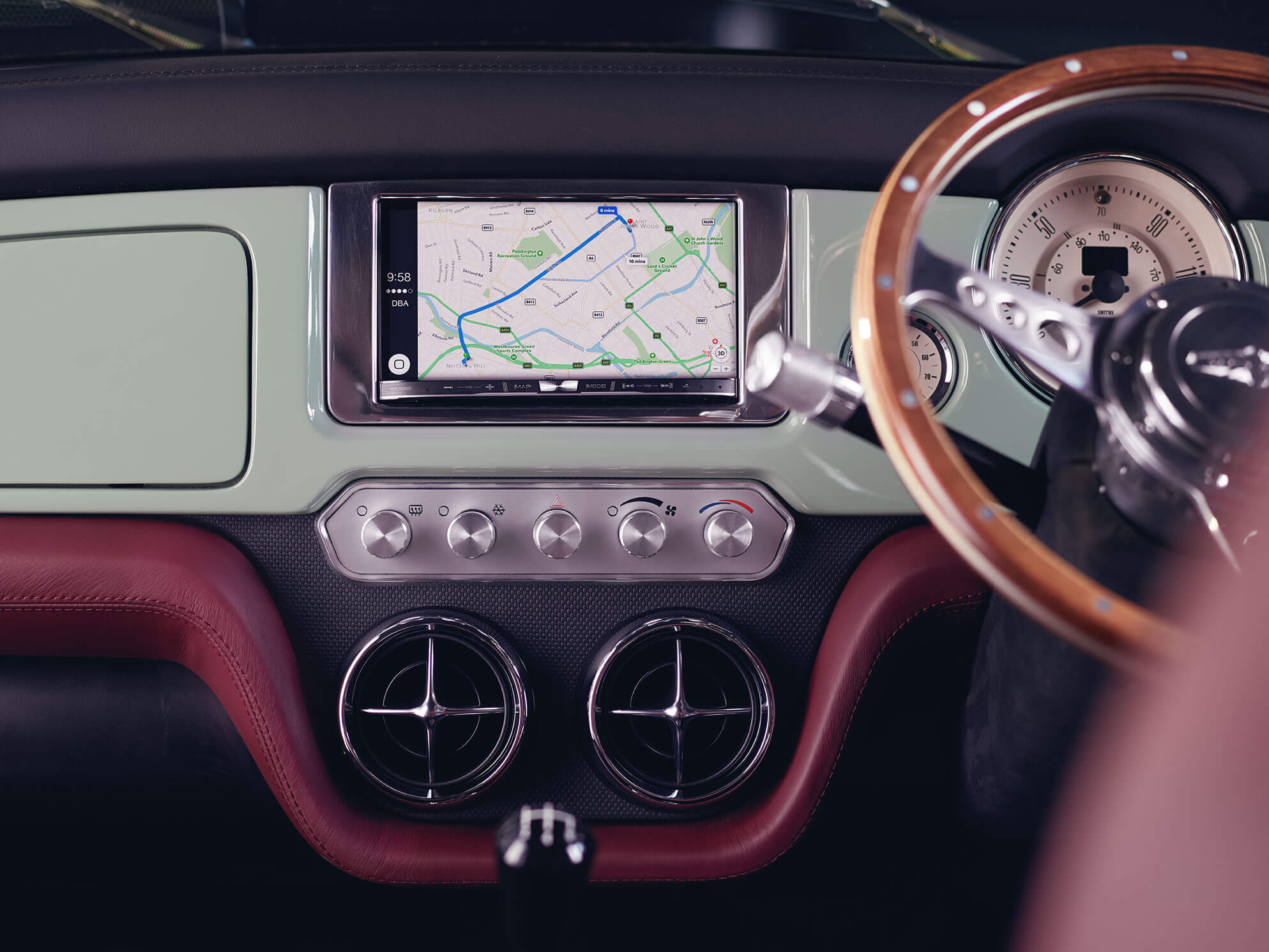 The wood and leather decorated interiors feature a 7-inch touchscreen interface with Bluetooth connectivity, Apple CarPlay and Android Auto. There’s also a push-button start. The retro dials are from Smiths and are LED illuminated. While the Monte Carlo edition gets inspired by the Monte Carlo Riviera, the Cafe Racer takes it from the vintage bikes.
