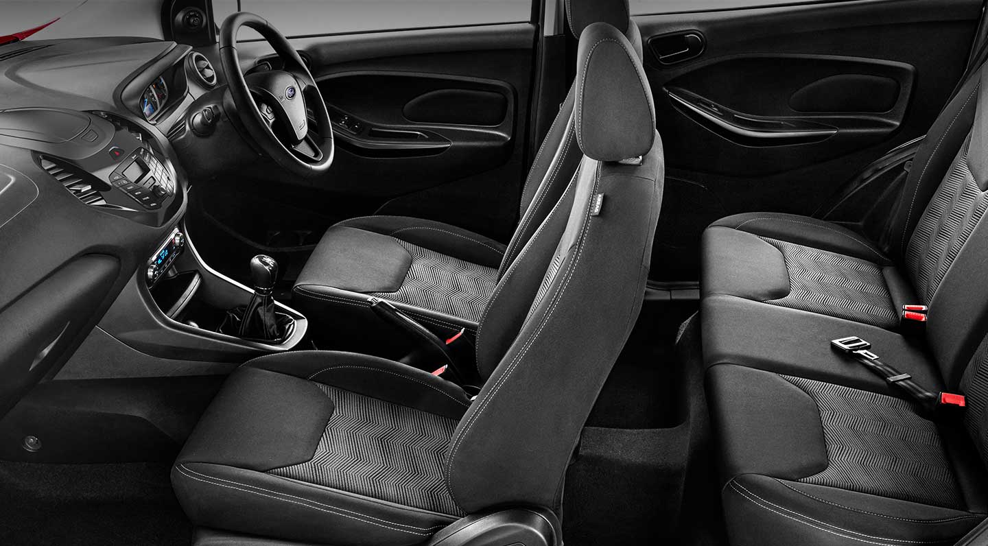 The Figo Sports’ black interiors feature red contrast stitching on the seats and on the gear knob.