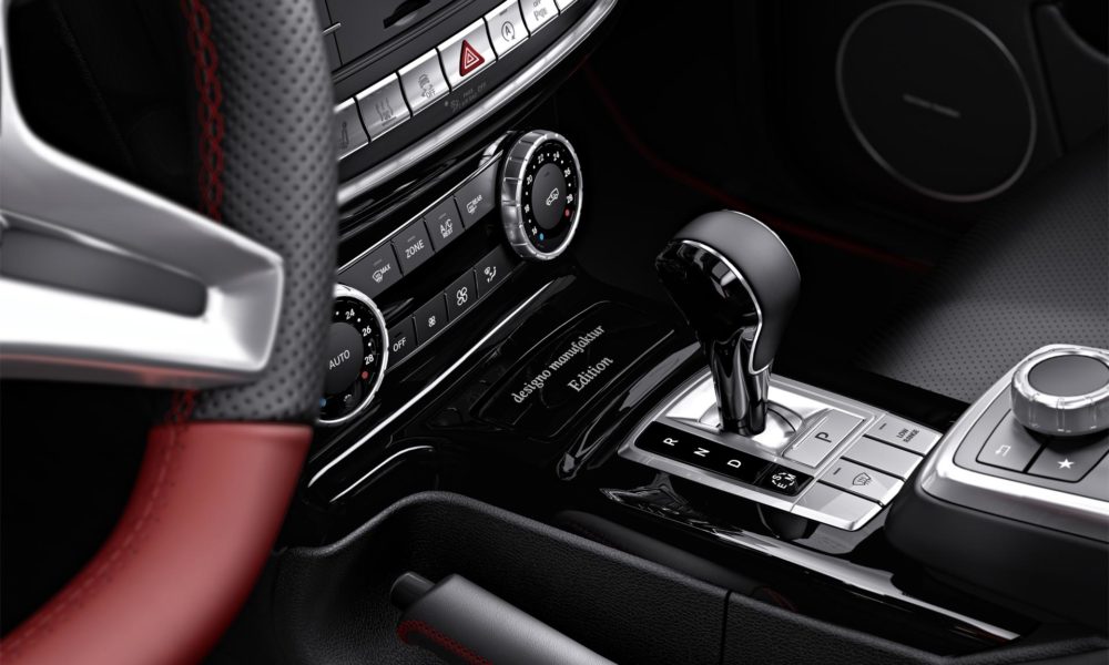 On the inside, standard appointments include the designo Exclusive package with a two-tone, leather-lined dashboard and AMG sport seats with two-tone leather upholstery. There is a choice of two-tone designo nappa leather in six attractive colours, or as an alternative two-tone seats in designo nappa leather in three colours with seat side bolsters in black carbon leather. In both variants the seat and door centre panels are in a diamond pattern. Customers have a choice of AMG Carbon or black designo piano lacquer trim. The Seat Comfort package including multicontour seats and seat climatisation for the driver and front passenger are also on board the Exclusive Edition. Other options available from the designo manufaktur range include designo seat belts in red, leather-clad grab handles in the roof liner and a two-tone AMG Performance steering wheel matching the seat colours.
