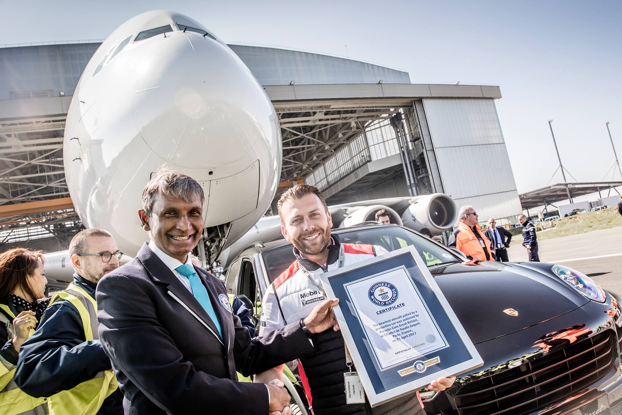 A Porsche Cayenne S diesel has towed an Air France Airbus A380 weighing 285-tonnes at Charles de Gaulle Airport, setting a new Guinness World Record for heaviest aircraft pull by a production car, by a margin of 115-tonnes. The Cayenne has dethroned Nissan Patrol which towed a 170-ton cargo in 2013.