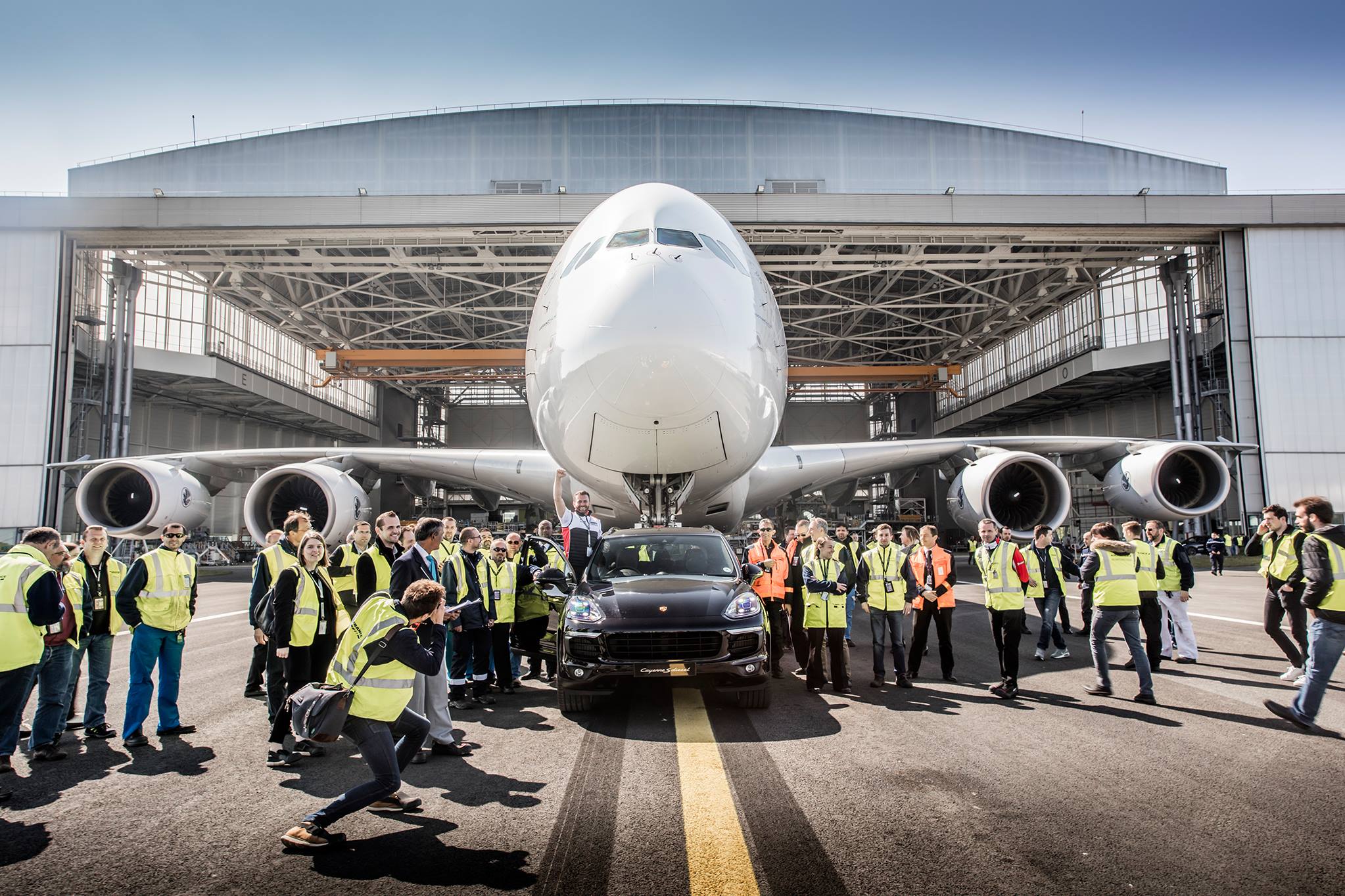 Air France devoted its 60,000 square metre engineering hangar and one of its fleet of 10 A380 aircraft for the project. A special tow hook was attached to the Cayenne for the job of pulling the largest commercial aircraft over a distance of 42 metres. The Cayenne’s 4.1 litre V8 biturbo makes 385 hp and an enormous 850 Nm of torque. The exercise was then repeated using a Porsche Cayenne Turbo S, which packs a 4.8 litre V8 biturbo, producing 570 hp and 800 Nm of torque.