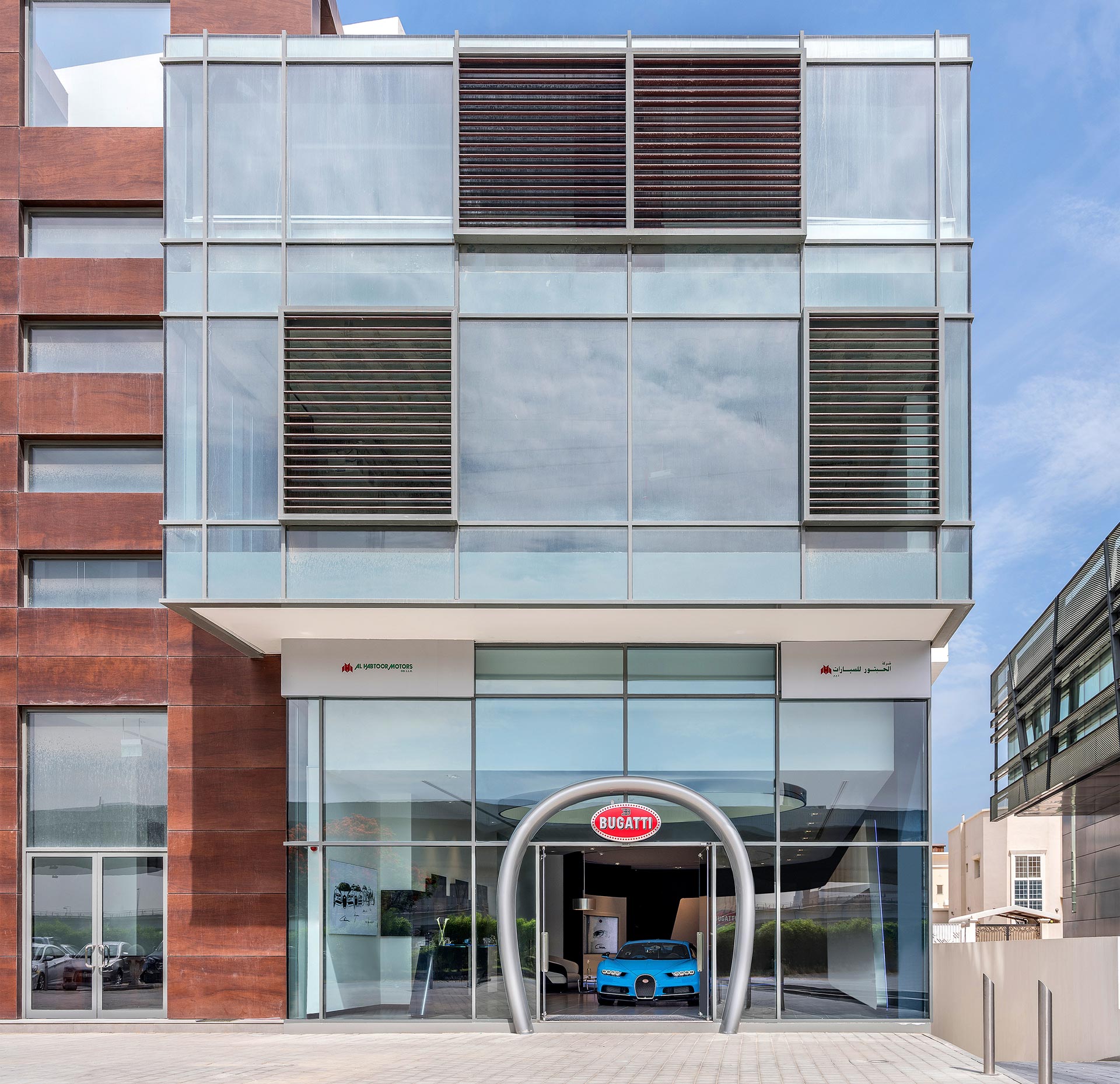The Dubai dealership is the 15th location in the brand’s global dealership network. The showroom’s entrance features the legendary Bugatti horseshoe. This design element, which can be found on a Bugatti’s radiator grille, is almost 4 metres high. Inside the building customers and guests are welcomed into a specially designed lounge area equipped with furniture from the Bugatti Home Collection. Here, customers can configure their Chiron in a private atmosphere. The technical achievements and design of the Chiron are presented using exhibits and animations on large screens. In the heritage section, visitors can learn about the Bugatti brand values – Art, Forme, Technique.