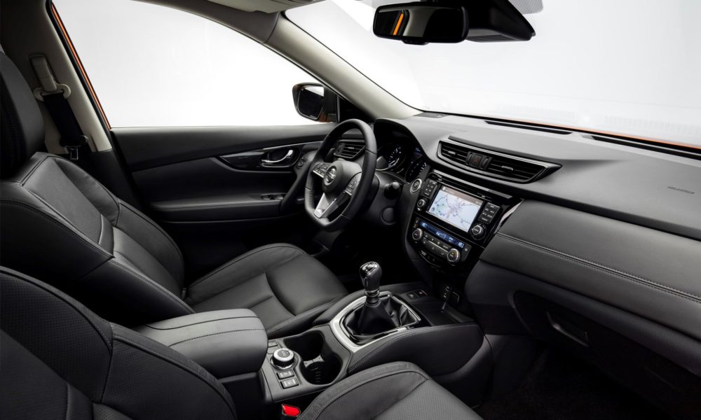 Interiors feature a new D-shaped steering wheel (flat bottom), which gets heating functionality for the first time. Other features include gloss black accents, heated seats, eight-speaker BOSE Premium audio system, DAB digital radio, NissanConnect touchscreen sat nav, and reclining second row seats. A new tan and black two-tone leather interior is an optional extra on Tekna grade.