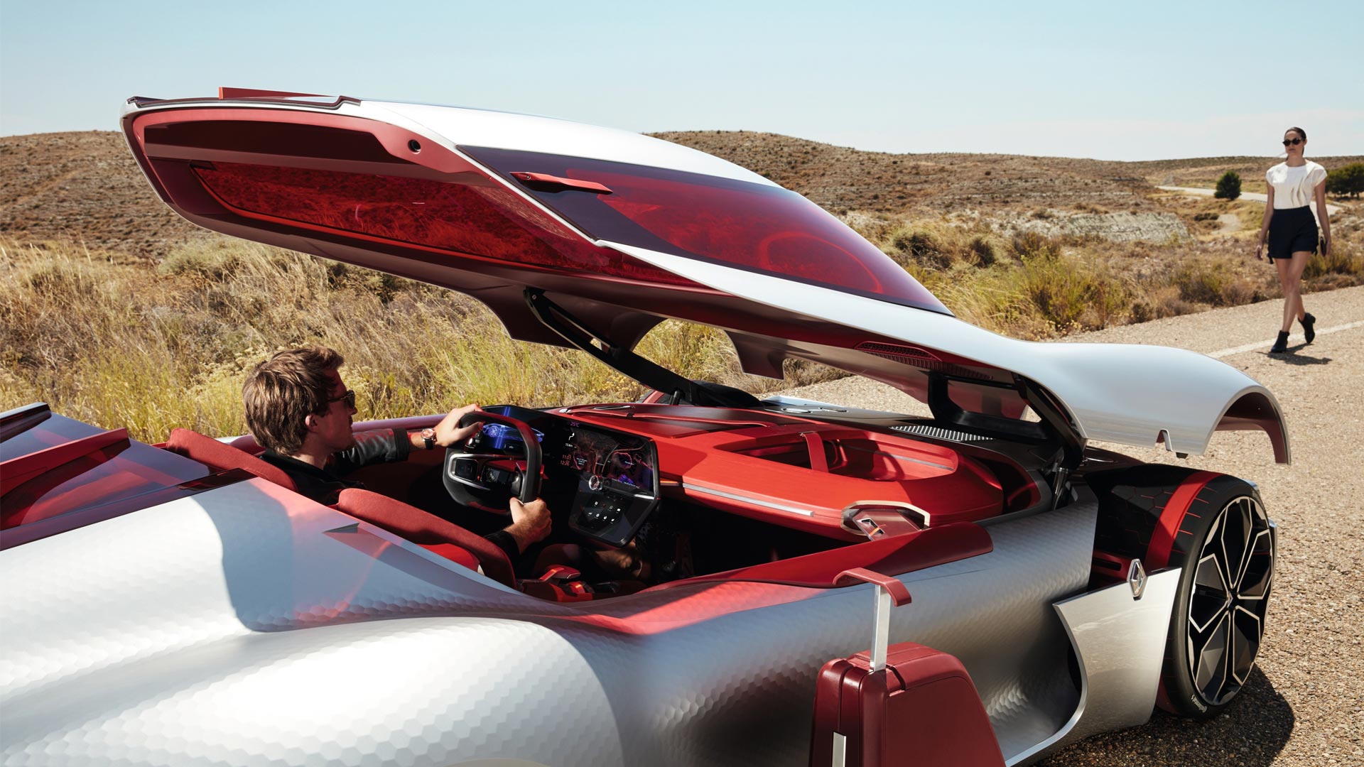 The concept car showcases the design cues of future Renault models and is powered by an electric powertrain derived from the world of Formula E with maximum power of 260 kW (350 hp) and peak torque of 380 Nm. The Trezor can sprint from standstill to 100 km/h in less than four seconds. There are two batteries, each of which has its own cooling system optimised by the variable-geometry air intake incorporated in the bonnet.