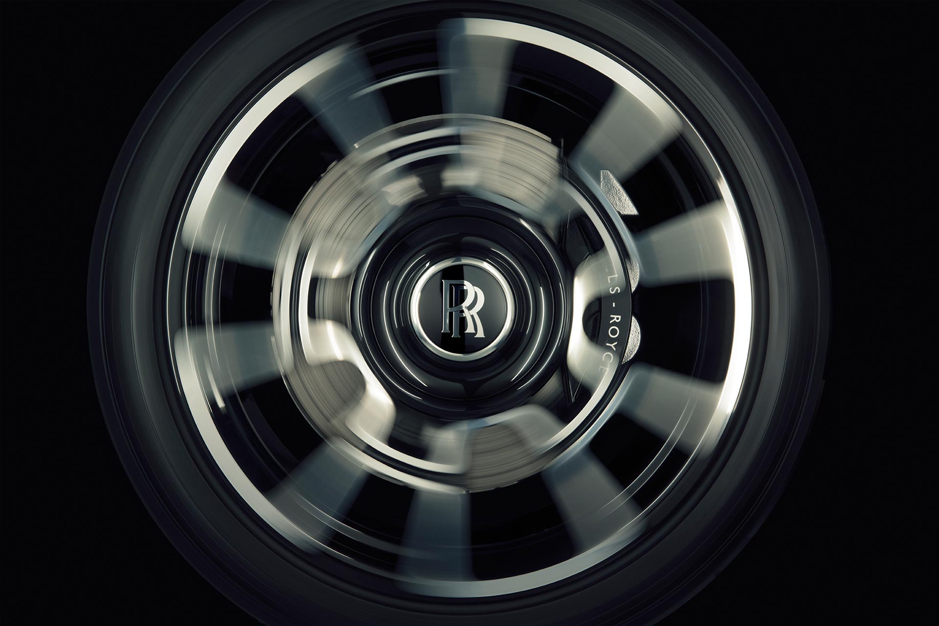 The Spirit of Ecstasy is finished in black chrome. The front grille surround, boot lid finisher, exhaust pipes, and ‘Double R’ badges, all get black treatment. On the inside, threads of aircraft-grade aluminium, a delicate 0.014 m in diameter, are woven together and then bonded in carbon fibre. Surfaces are then finished with six coats of lacquer before being left to cure for 72 hours and hand-polished to a mirror finish.