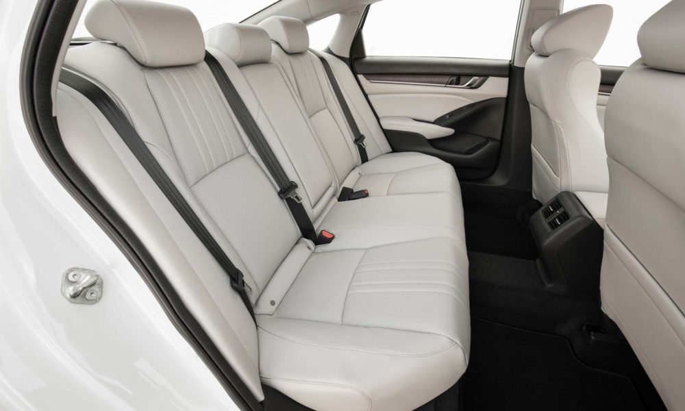 The longer wheelbase has enabled an extra 2-inches of rear legroom. Overall passenger volume is increased by 2.5 cubic feet to 105.7 (based on LX). Trunk space has also been increased by nearly one cubic foot on the 1.5-litre and 2.0-litre engine-powered Accords and by 3.2 cubic feet on the Accord Hybrid to a top-level 16.7 cubic feet (+0.9 cu.ft.).