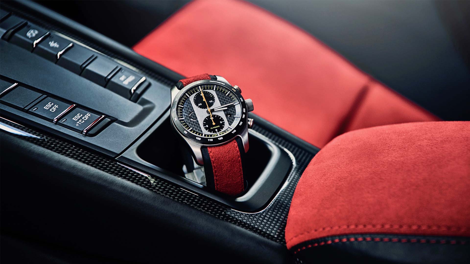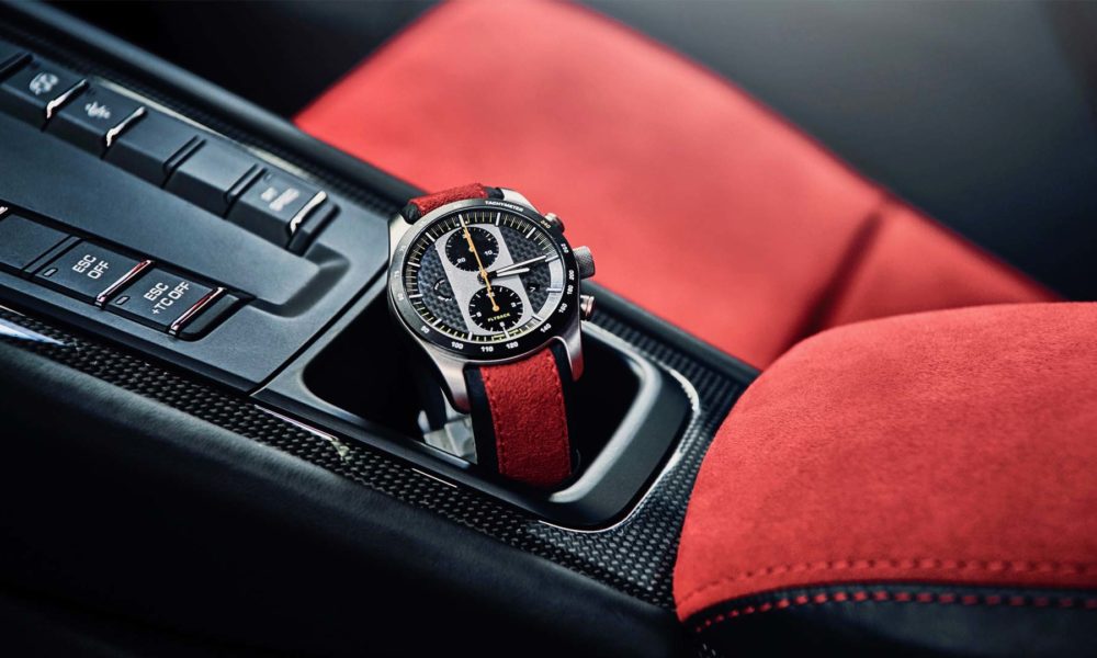 A watch made from lightweight titanium by Porsche Design is reserved exclusively for 911 GT2 RS drivers. The watch features a ‘flyback function’.