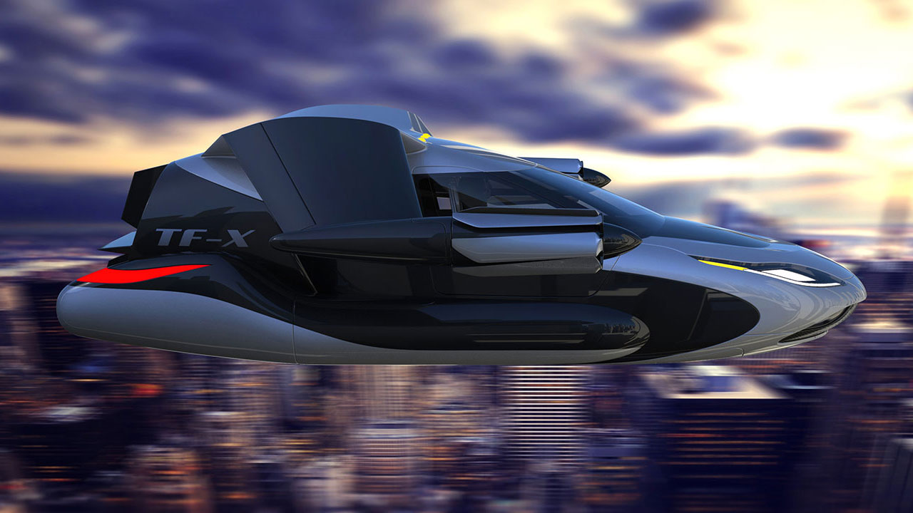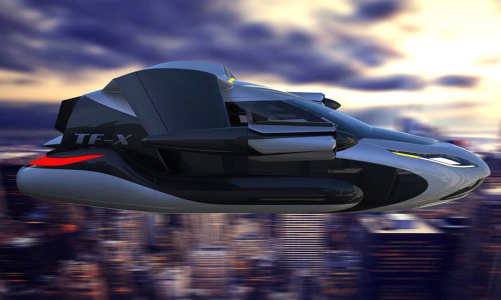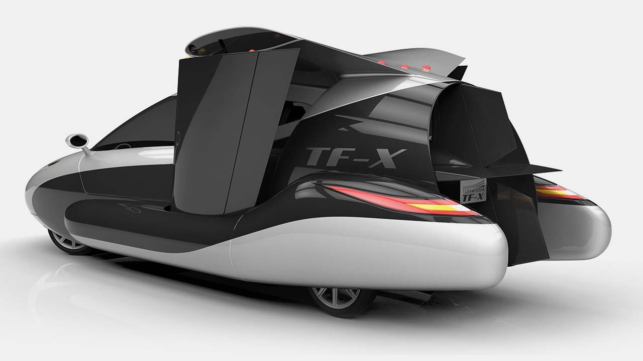 The TF-X we see in these pictures is Terrafugia’s next project, it will have a hybrid powertrain with an 800 km range and 320 km/h cruise speed. The electric pods will produce 1 MW of power. The TF-X will have vertical take-off and landing capability.