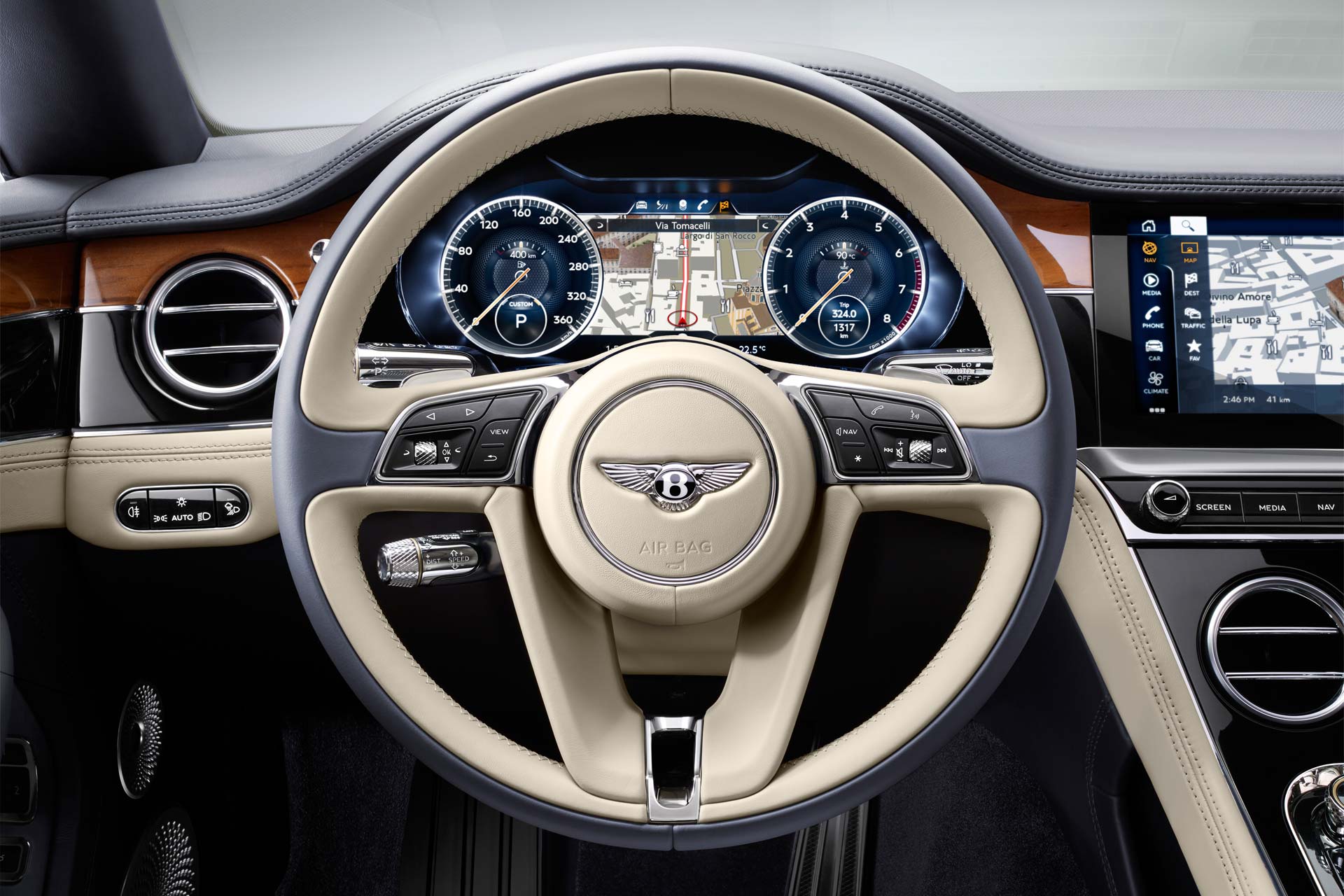 Additionally, the third generation Continental GT features Bentley Dynamic Ride, a 48-volt roll control system. The system controls and adjusts the electronic actuators on the anti-roll bar of each axle, aimed to improve handling and ride comfort, as well as making the car feel lighter and more precise. Another feature is the latest-generation Continuous Damping Control (CDC), which constantly adjusts the dampers for comfort.