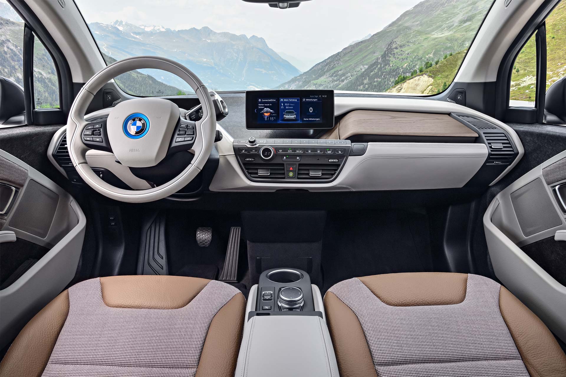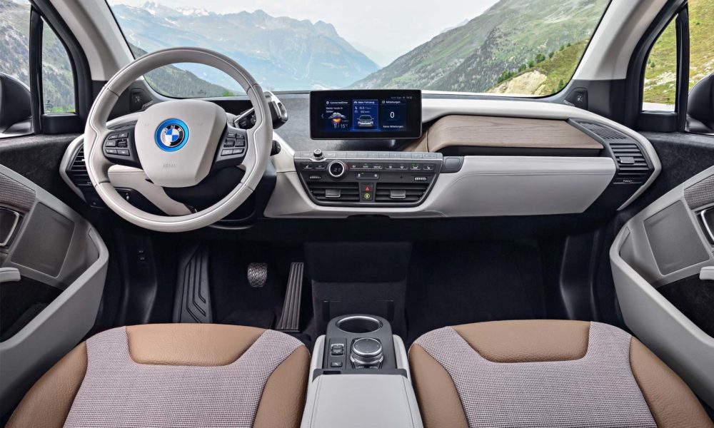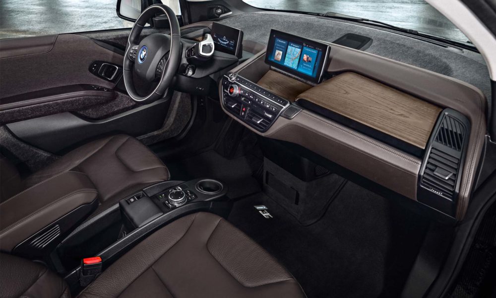 BMW said that over 80 percent of the surfaces visible to the passengers are made from recycled materials or renewable resources, including recycled plastics, renewable raw materials, natural fibres and open-pored, unbleached eucalyptus wood. The new blue seat belt option provides a splash of colour in the interior in typical brand style. The new i3s supplements all this with special model lettering on the front floor mats as standard.