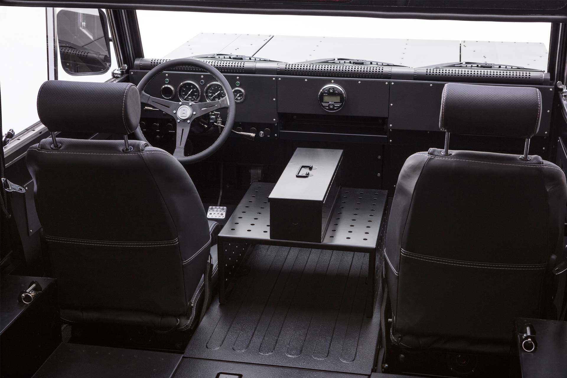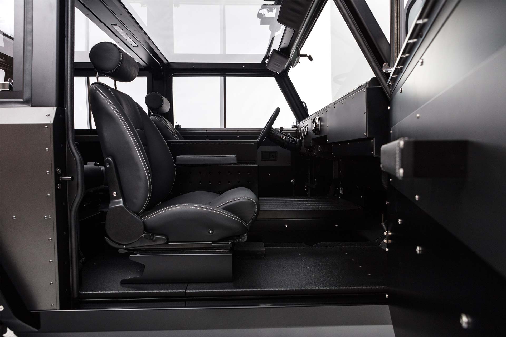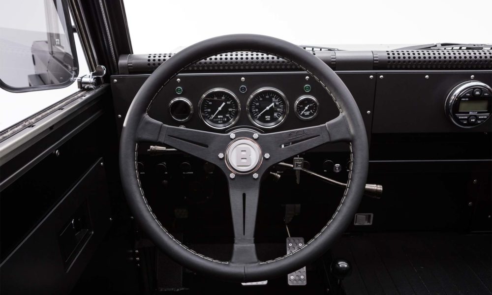 The B1 has a classic 3-box design and is built on a lightweight aluminium architecture. The military-style look comes courtesy of a special paint called ‘Gunhouse Grey’, which according to Bollinger, is a nod to the road where the development work was completed. Black accents and a black satin wheel finish to complete the exterior appearance.