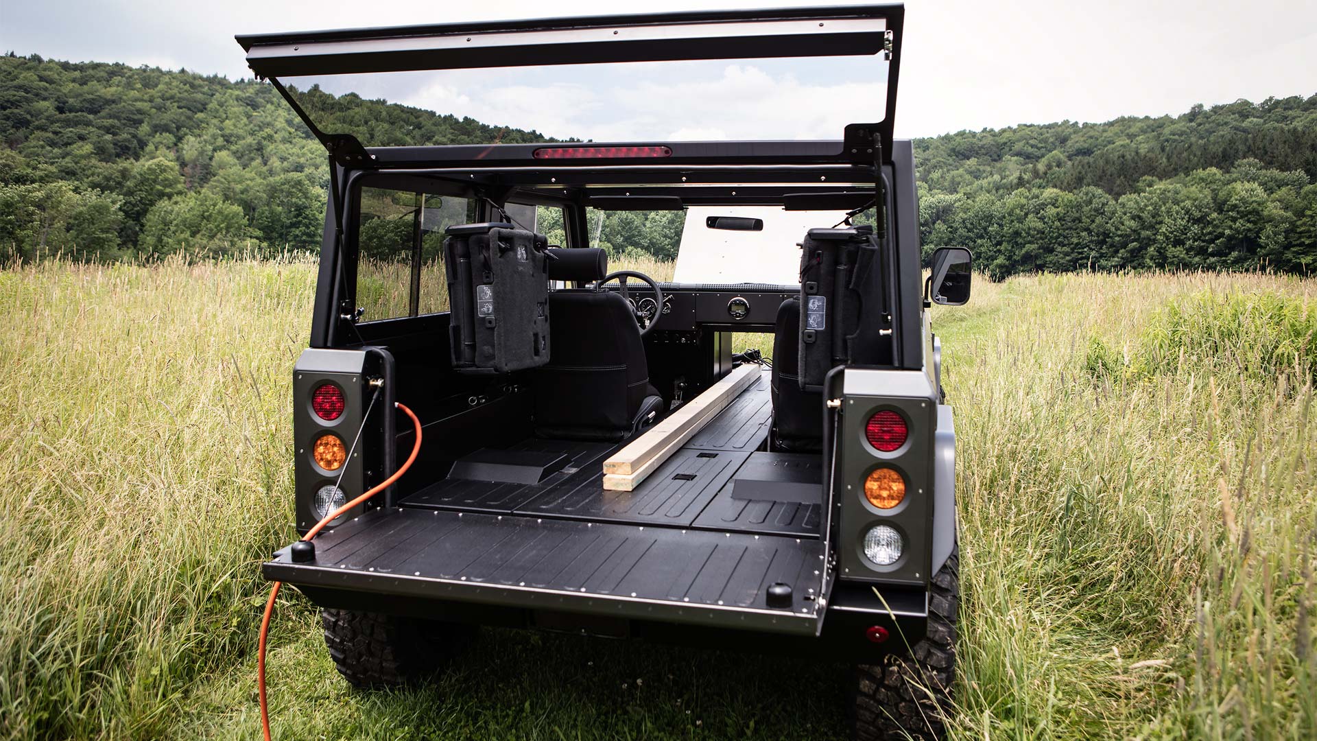 The chassis rides on Mud Terrain LT285/70/R17 tires with high offset aluminium wheels. The regenerative braking system consists of 11.75-inch vented inboard discs and four-piston calipers.