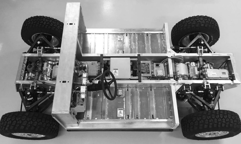The base ride height provides for 15.5-inches (393.7 mm) of ground clearance but will be adjustable using a self-leveling, 4-wheel independent, hydro-pneumatic suspension within the 10 inches of wheel travel. Disconnectable anti-roll bars allow traction enhancing, full suspension articulation during off-road maneuvers.