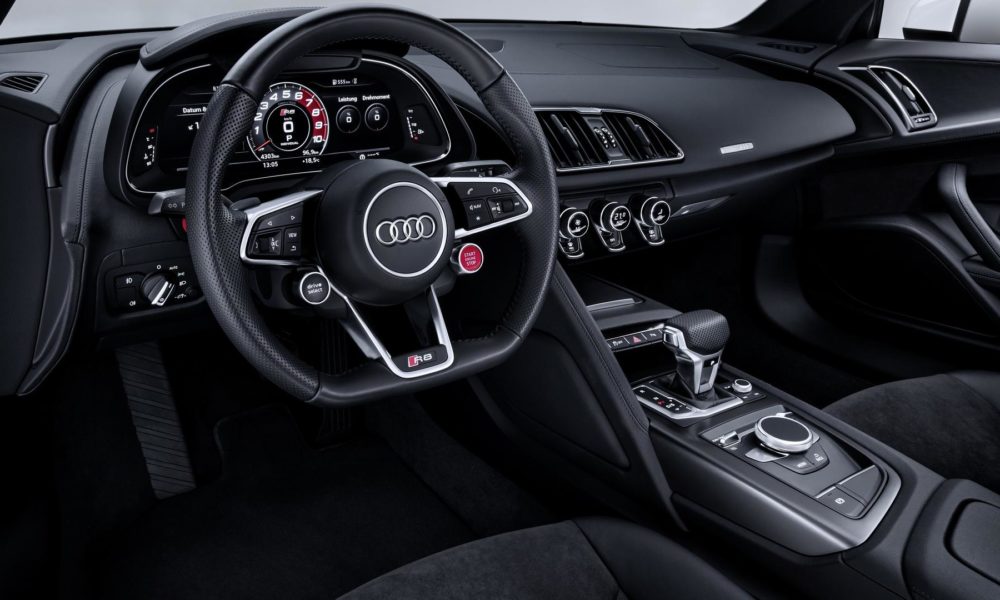 The Coupé weighs 1,590 kg (without driver) – 50 kg less than the R8 Coupé with all-wheel drive which needs additional components like propshaft, multi-plate clutch and center differential. The Spyder is 40 kg lighter than the R8 Spyder V10 weighing in at 1,680 kg (without driver). The Coupé has an axle load distribution of 40.6:59.4 and 40.4:59.6 for the Spyder.