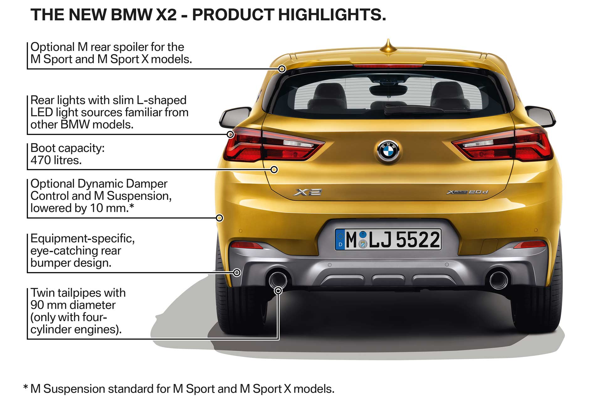 After making several camouflaged appearances, BMW’s new compact crossover ‘X2’ has been officially revealed, with market launch slated in March 2018. Take a look at the product highlights below.