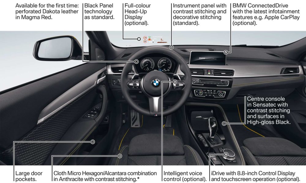 BMW Connected and BMW ConnectedDrive Services – both available as an option for the X2. Joining them on the options list is the full-colour Head-Up Display.