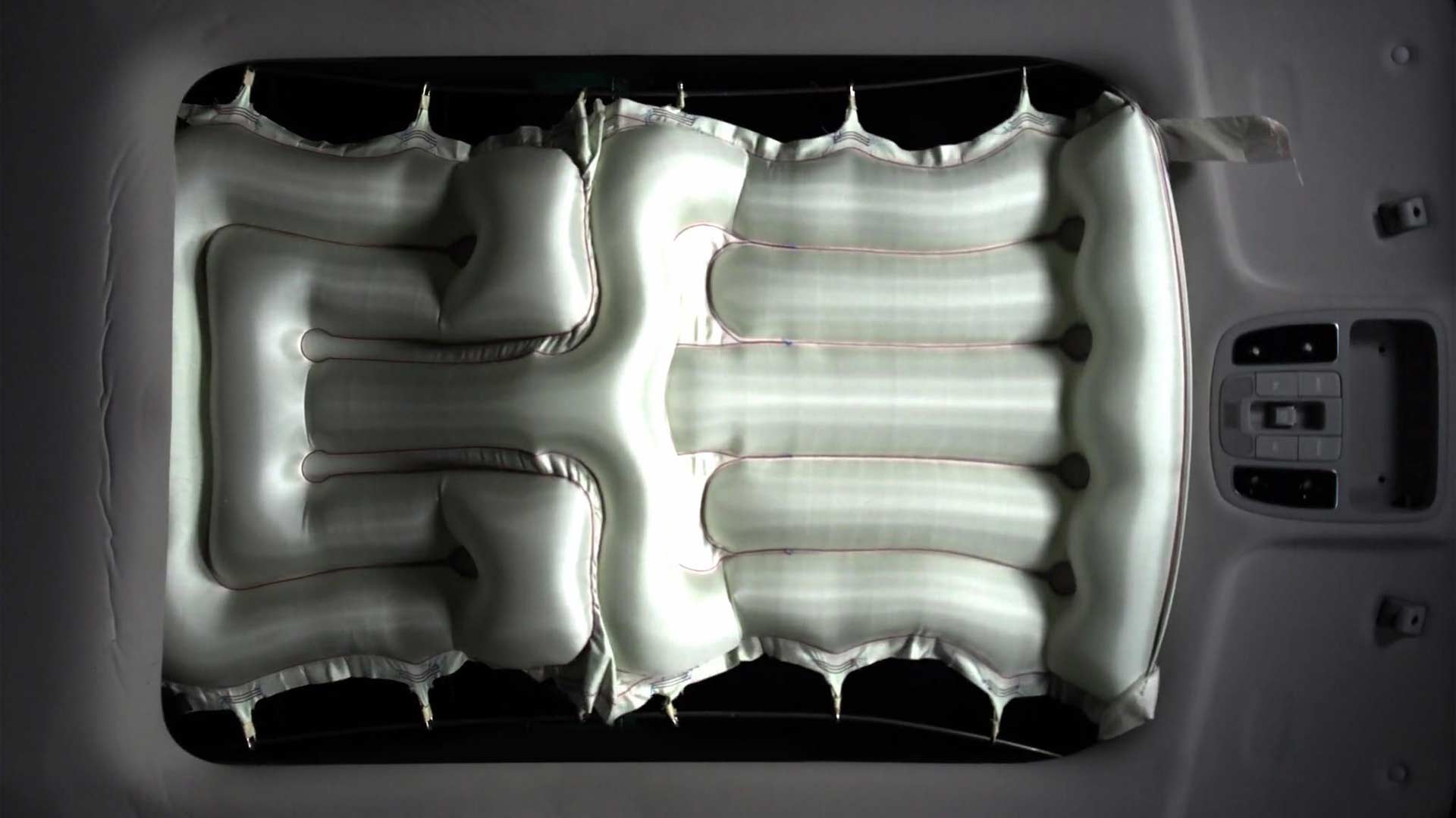 In a road test using dummies, when the airbag was deployed, it prevented the passenger from being flung out of the car and cushioned the impact on the head. The panoramic sunroof airbag is installed inside the sunroof, and deploys forward from the rear of the car. It resembles the curtain airbag that is deployed alongside the windows of the vehicle. If the turning angle of the vehicle is changed due to rollover, the sensor detects it, and the inflator deploys the airbag. The airbag cushion inflated by the gas covers the entire roof surface of the vehicle in only 0.08 seconds, said the company.