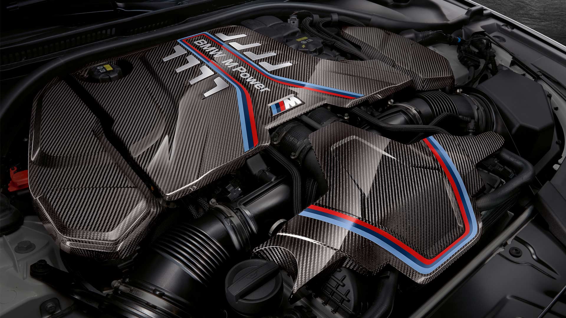 Additional components include M Performance foils on the side and bumper, carbon fibre mirror caps, and an elaborately handcrafted carbon fibre engine cover extension kit.