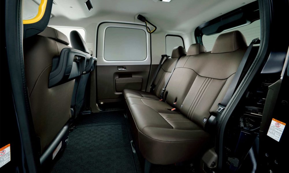 Design features include a low, flat floor, making it easy for customers to ingress and egress from the taxi, a wide-opening, power sliding rear door (left side only) and space to accommodate wheelchair users. Also, the body has deep indigo (koiai) tone, a traditional color that has long been a symbol of Japan.