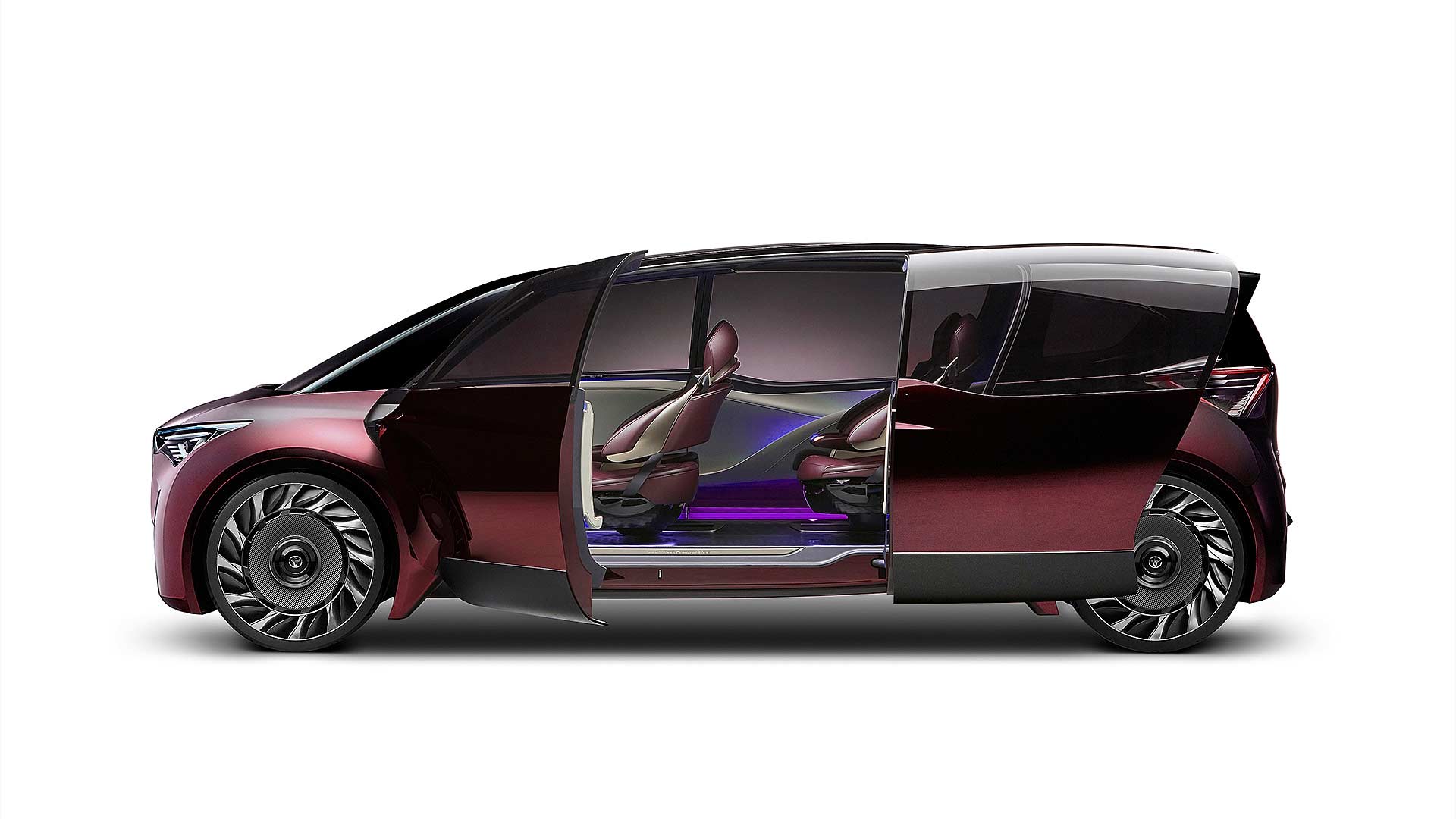The vehicle adopts a diamond-shaped cabin that narrows towards the rear, while being wider in all dimensions from the front to the center of the vehicle, maximizing the space of the second row seats and aerodynamic performance.
