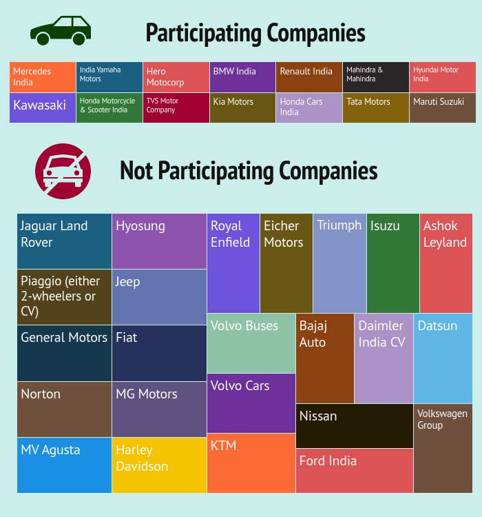 It is being reported that a total of 32 companies including big names such as Bajaj Auto, Jaguar Land Rover, VW Group, Harley Davidson, Ford, FCA and Nissan have decided to skip the Expo as questions are raised over return on investments. The companies who have decided against participating next year has grown more than four times compared to the previous edition of the biennial event.