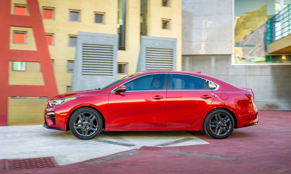 The 2019 Forte’s overall length has increased by 3.2-inches to 182.7-inches, allowing for more legroom and additional cargo in the trunk. The 15.1 cu.-ft., (427.5 litres) cargo room is among the largest in the segment and generous enough to accommodate gear for a group of friends on a road trip, Kia said. Additional headroom results from increasing the overall height nearly a half-inch to 56.7-inches, while the overall width has grown to 70.8-inches.