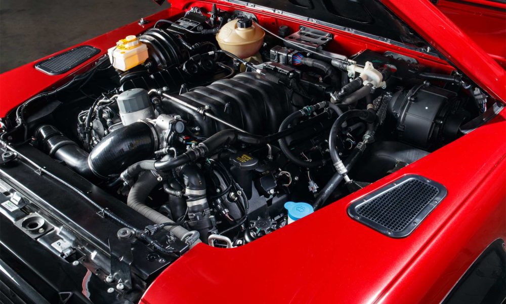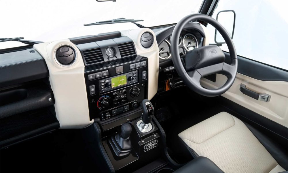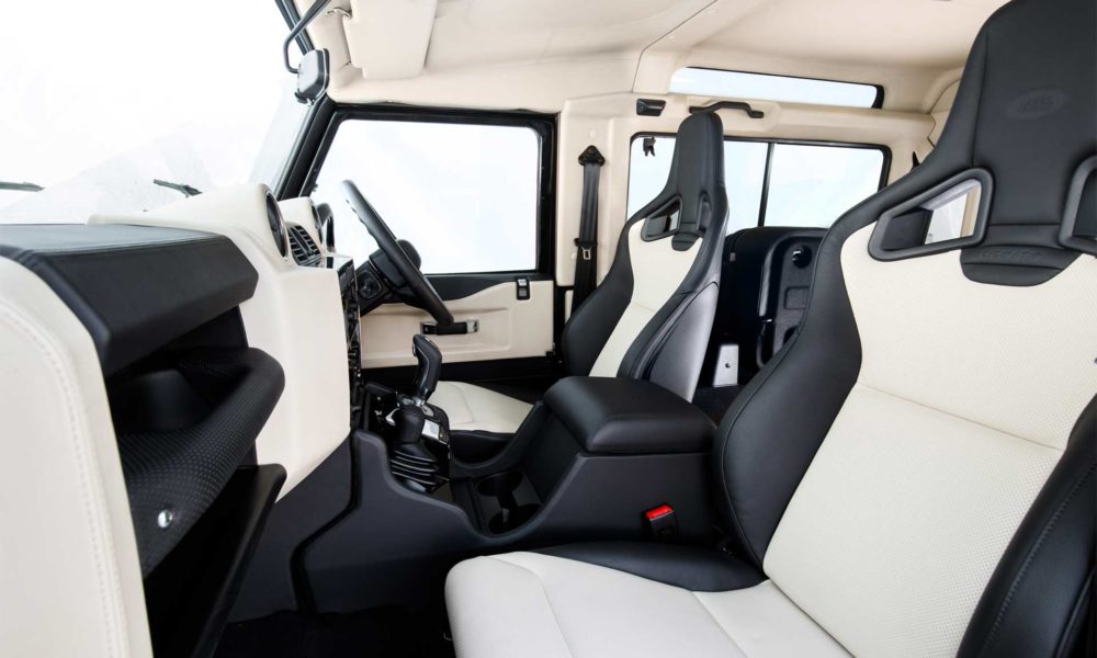Full Windsor Leather interior trim covers the dashboard, door panels, headlining and Recaro sports seats. Land Rover Classic’s own Classic Infotainment System is also fitted.