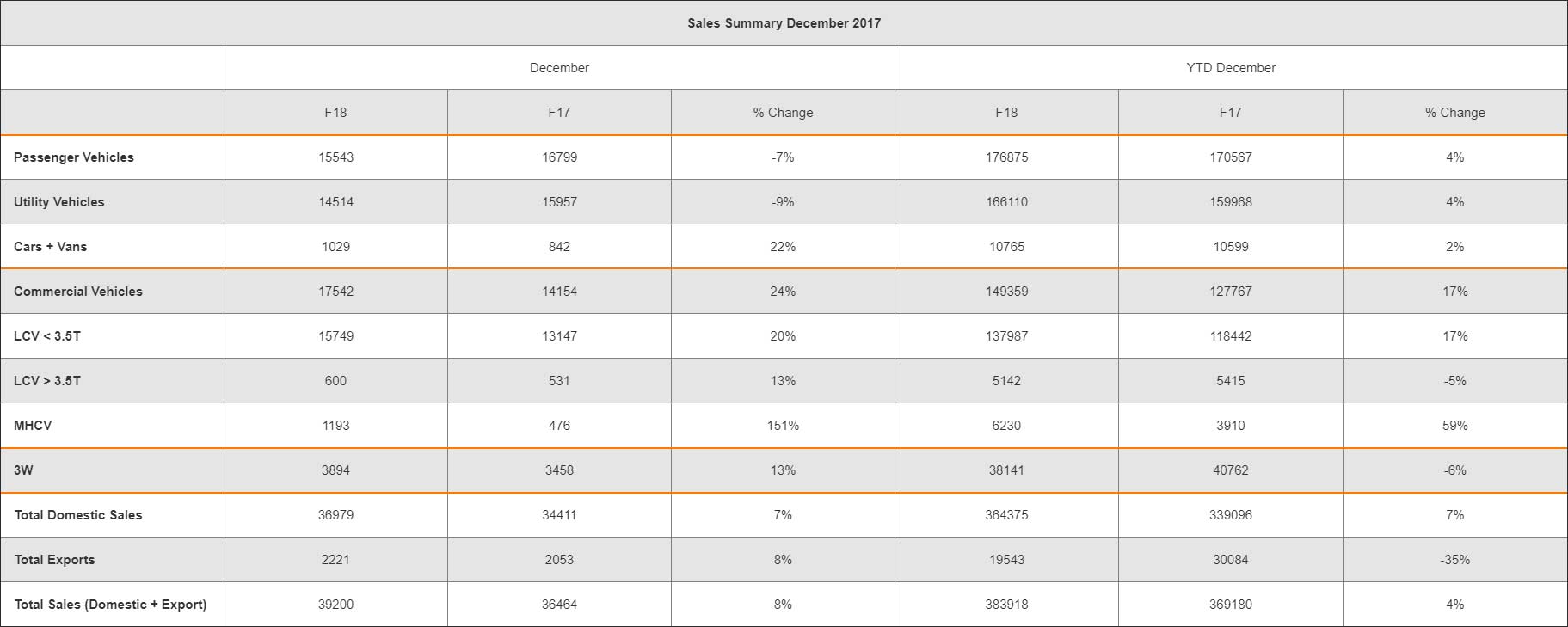 The company’s domestic sales stood at 36,979 vehicles during December 2017, as against 34,411 vehicles during December 2016, registering a growth of 7%. In the Medium and Heavy Commercial Vehicles segment, M&M sold 1,193 vehicles for the month, registering an impressive growth of 151%. Exports for December 2017 stood at 2,221 vehicles, a growth of 8%