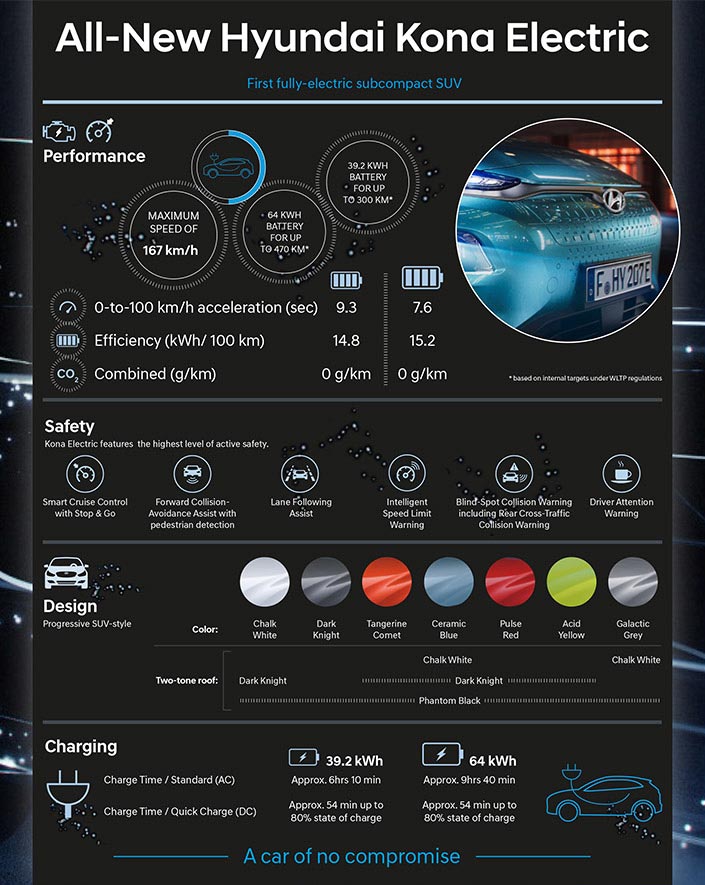 Hyundai Motor is already leading in future mobility solutions. By launching our All-New Kona Electric, we are pushing our ambitious eco car strategy forward. It’s a car of no compromise – combining an SUV body type with electric-mobility. It represents Hyundai’s progressive character. With Hyundai Motor, the future is now! – Andreas-Christoph Hofmann, Vice President Marketing and Product at Hyundai Motor Europe
