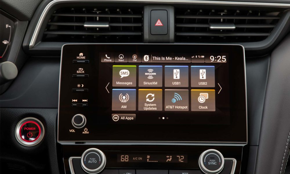 Inside, the new Insight features premium cabin appointments including a soft-touch dashboard, a 7-inch TFT instrument cluster, 8-inch touchscreen with Apple CarPlay and Android Auto integration, Bluetooth, Pandora compatibility, optional heated and leather-trimmed seating, heated side mirrors, 6-speaker audio system and more.
