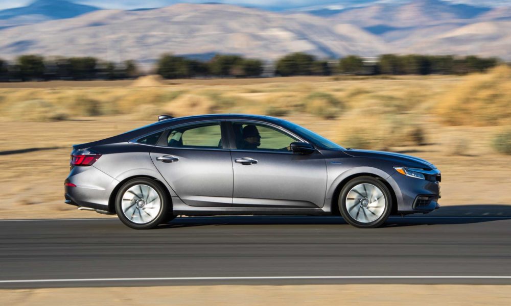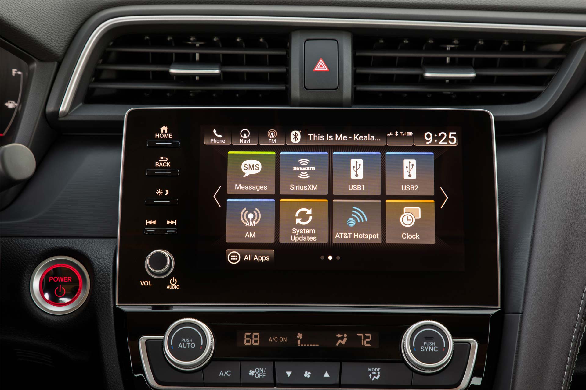 The range-topping Insight Touring adds 17-inch alloy wheels, LED fog lights, rain-sensing wipers, a power moonroof, LED side-mirror turn signals, perforated leather seating, heated front seats with 8-way power adjustment for the driver and 4-way power for the passenger, dual-zone climate control, embedded Honda Satellite-Linked Navigation System, Honda HD Digital Traffic, 4G LTE Wi-Fi with mobile hotspot capability and Wi-Fi-enabled over-the-air system updates, next-generation HondaLink subscription services, a 10-speaker premium audio system, and HomeLink Remote System.