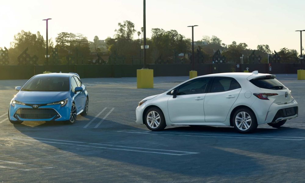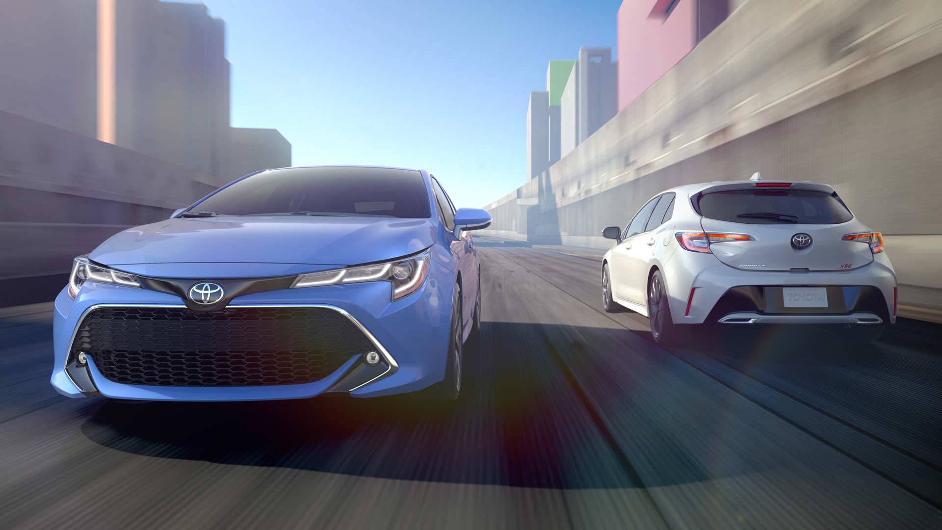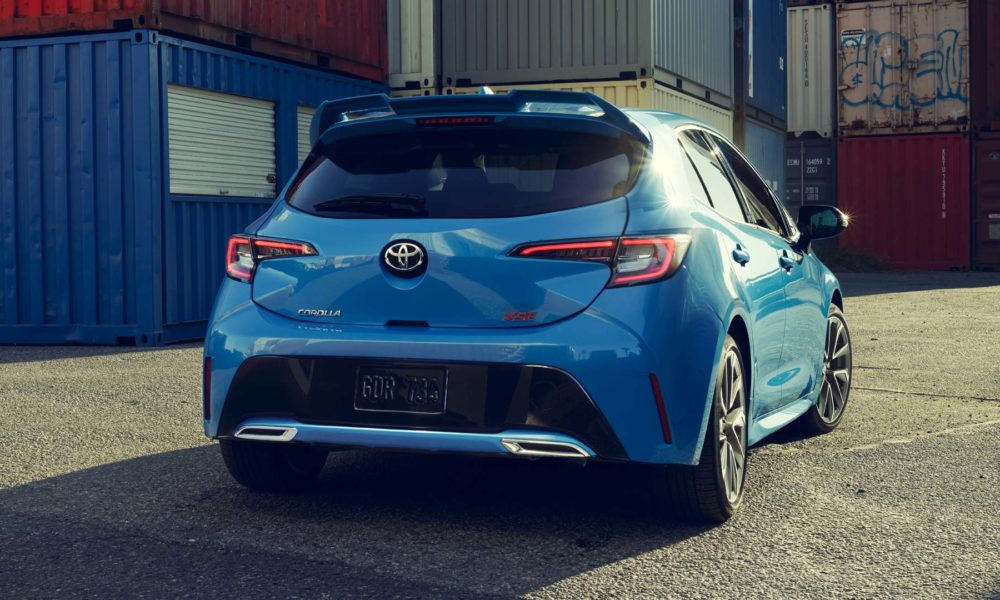 Exterior equipment includes J-shaped Bi-Beam LED headlamps, optional Adaptive Front Lighting System (AFS), LED fog lamps and all-LED tail lamps. Wheel sizes range from 16-inches to 18-inches in diameter. The hatch door is made from lightweight materials called TSOP (Toyota Super Olefin Polymer) and ABS (Acrylonitrile Butadiene Styrene).