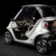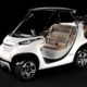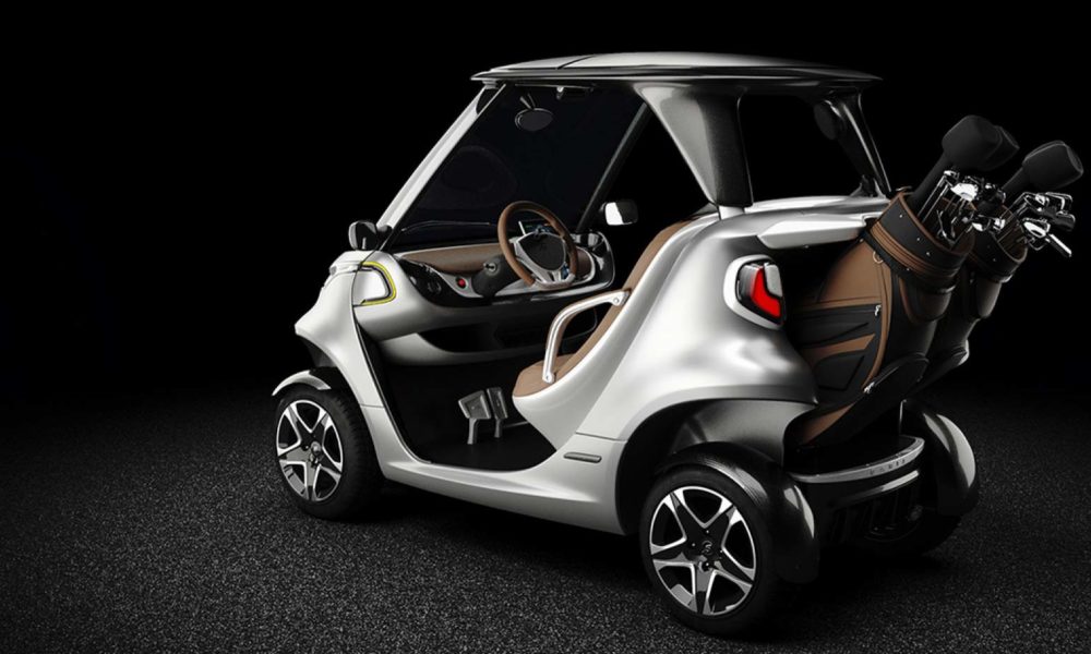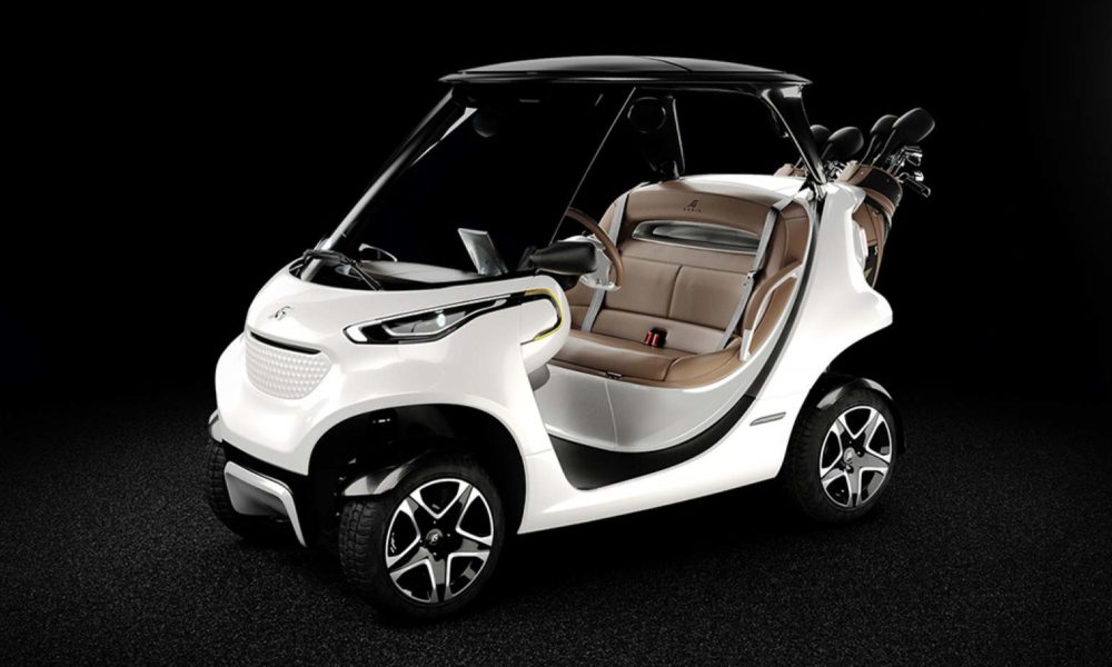 One of the unique selling points here is that it looks more car-like (Daimler smart-like?) than a traditional golf cart. The LED headlights give it a distinct look while the grille with its golf ball pattern makes the vehicle’s purpose clear.