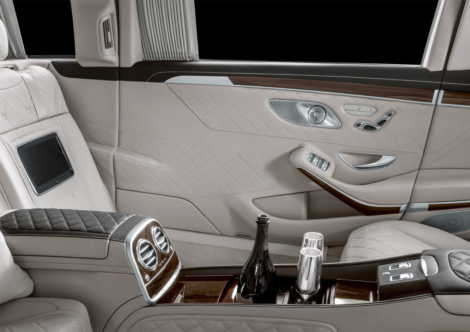 The exterior appearance of the Pullman is rounded off by the 20-inch wheels in a 10-hole design, typical of a Mercedes-Maybach. For an even more individual appearance, the range of paint finishes now also includes two-tone schemes.