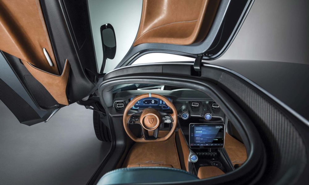 The numbers are what everyone is interested in and needless to say, they’re incredible. Four electric motors power each individual wheel, developing a total output of 1,408 kW (1,914 hp) and 2,300 Nm (1,696 lb-ft) of torque. The C_Two is claimed to sprint from 0-100 km/h (62 mph) in 1.97 seconds and on to a top speed of 412 km/h (256 mph).