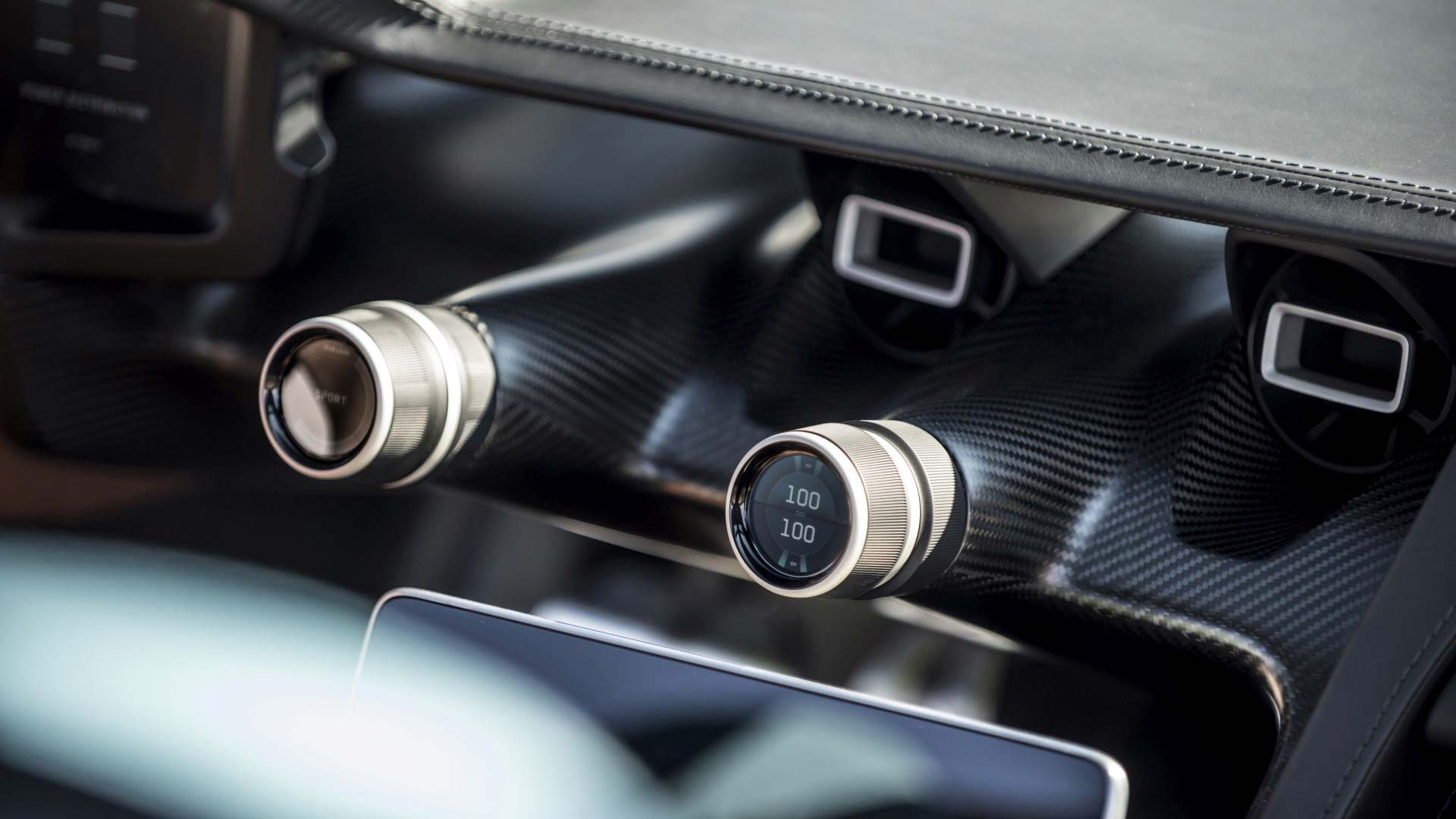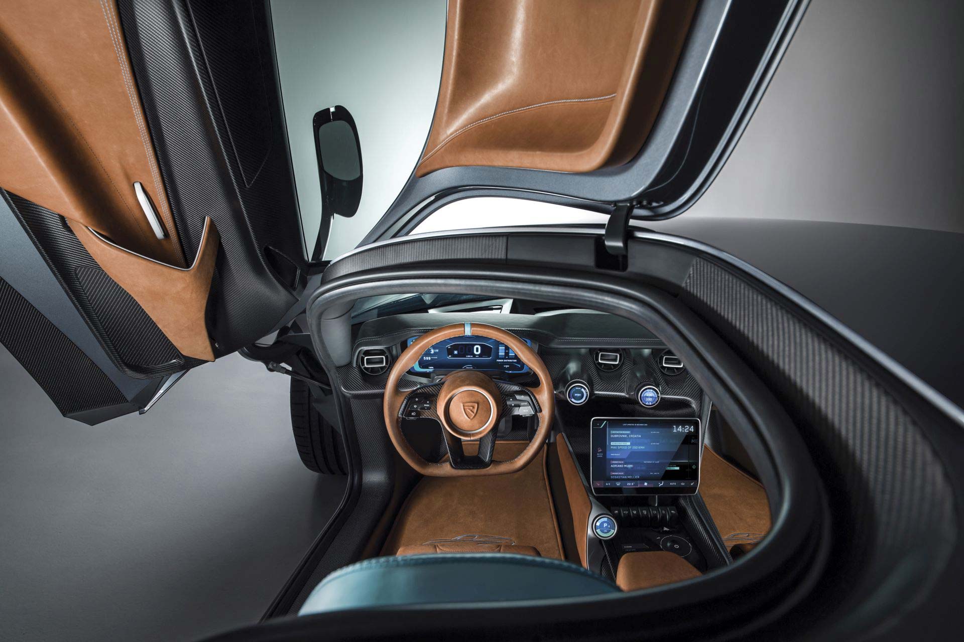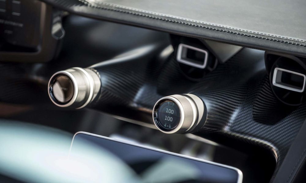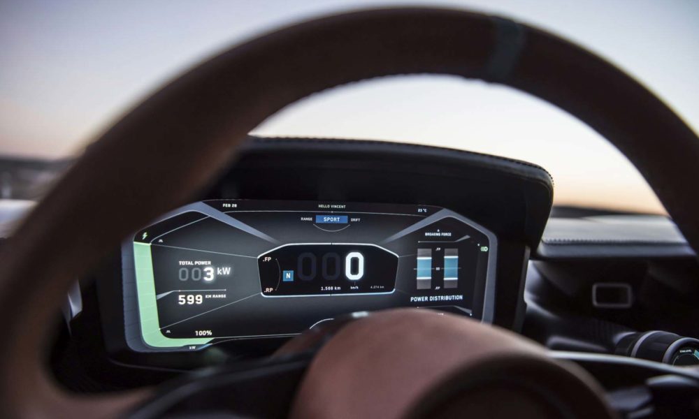 Unlocking of the car happens via facial recognition. The interiors get a display even for the co-driver displaying the car’s current functionality. There are gorgeous billet rotary controls for functions such as switching through driving modes, controlling the amount of torque sent to the back wheels in 10% increments, gear selecting and start/stop.