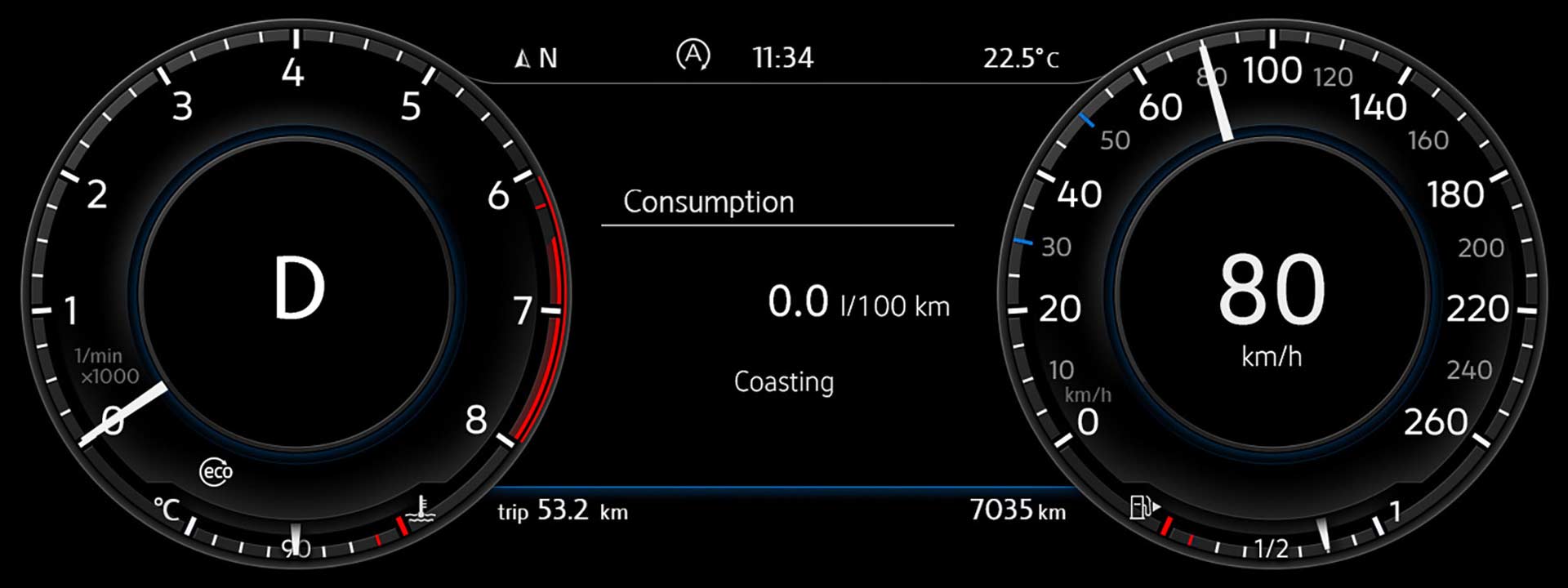 There is also the ‘Eco-Coasting’ mode which activates as soon as the driver lets go of the accelerator pedal. The engine management system switches off the TSI completely and decouples it from the drivetrain by disengaging the clutch. In this phase, the engine no longer needs to be “dragged along”. When “coasting”, the Golf repeatedly switches over to a zero-emissions mode for brief periods of time. In practice, the temporary engine shut-off reduces fuel consumption by up to 0.4 l/100 km, VW said. The micro-hybrid system utilizes the 12-volt electrical system and a compact lithium-ion battery to supply all relevant systems in the car with energy during the phases when the engine is inactive.