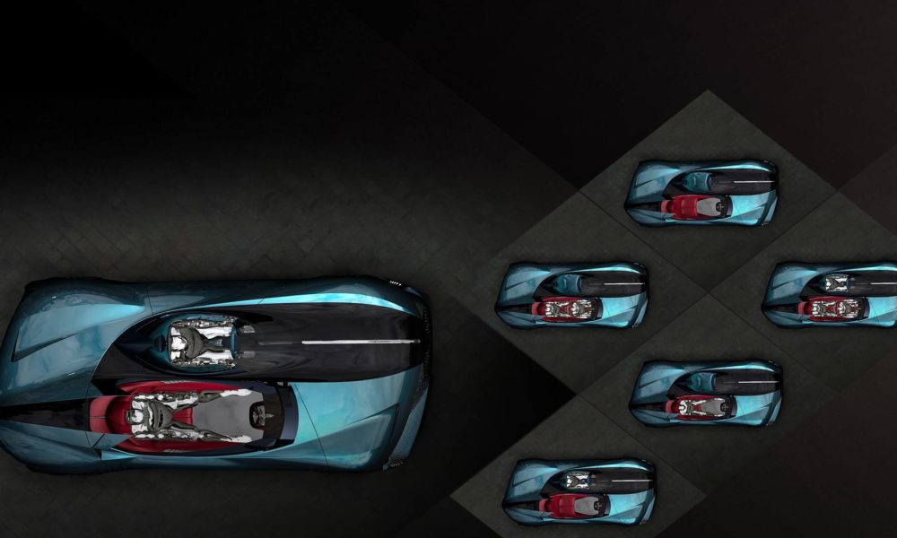 The concept has an asymmetrical design and the passengers have a separate enclosed area as if two different cars were cut and glued together. The cockpit is accessed by an Elytre door (butterfly) that has carbon fibre and leather trims. Once inside, the driver will find a motor racing-inspired single seat and leather-wood trimmed steering wheel with “capacitive senses to monitor the driver’s efforts.”