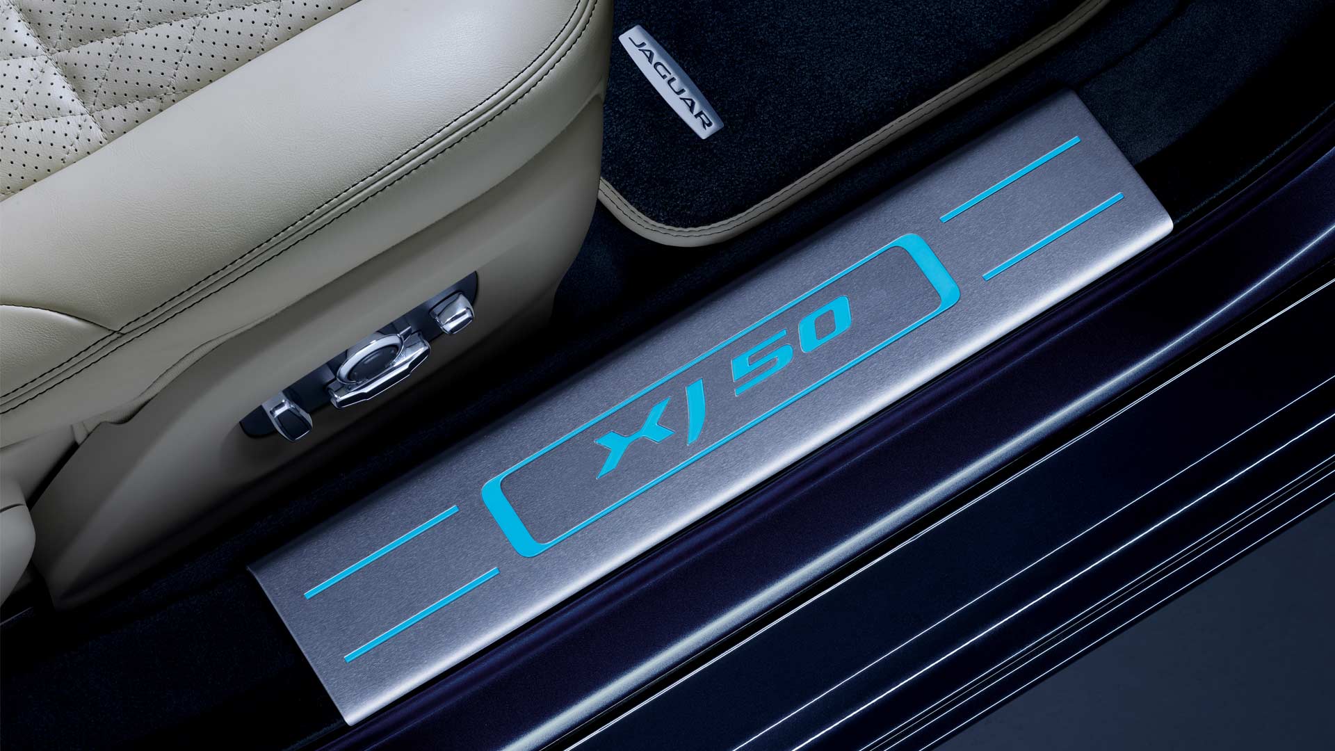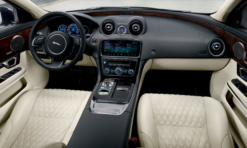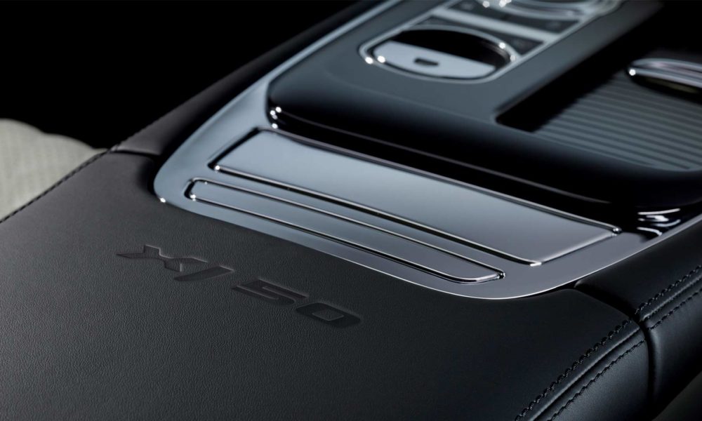 Interiors get XJ50-badged illuminated treadplates, soft-grain diamond-quilted seats, embossed XJ50 logos, anodised gearshift paddles and bright metal foot pedals.