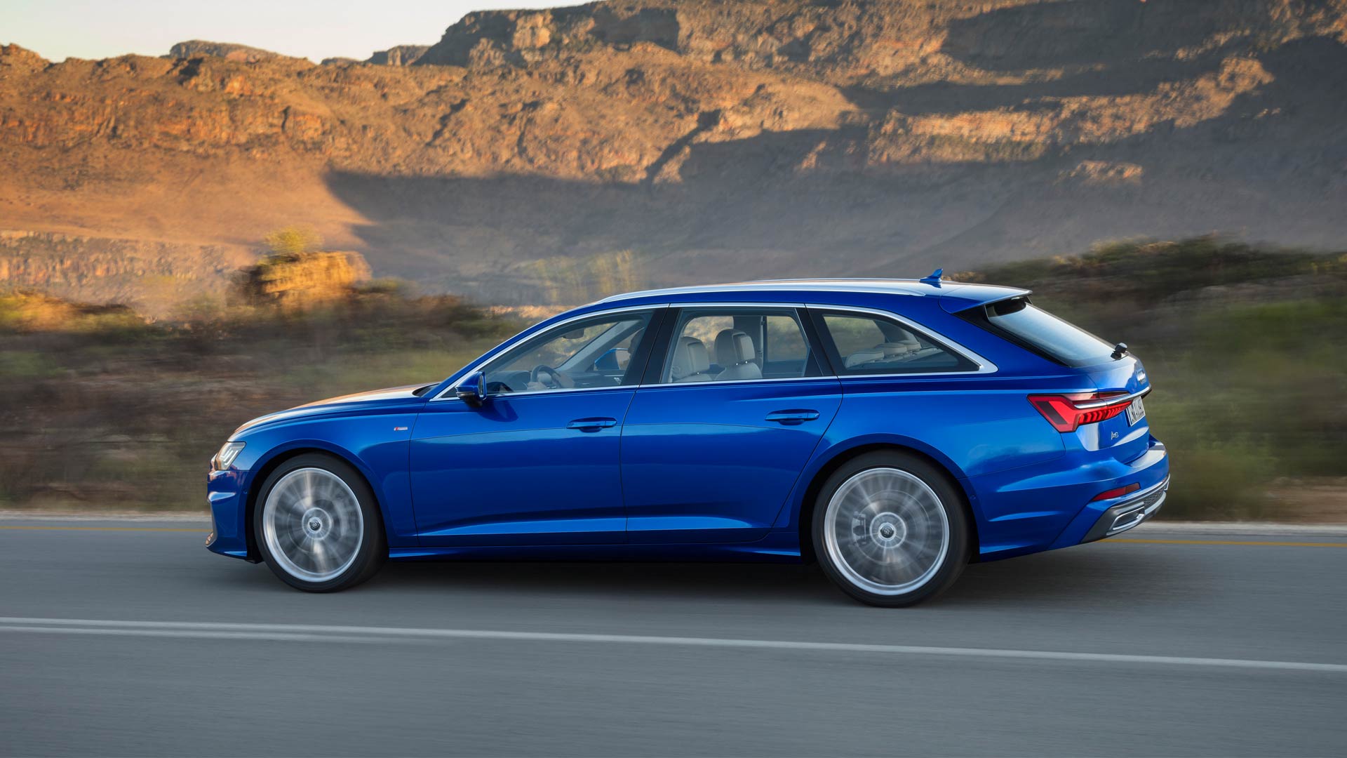 The new A6 Avant is a mild hybrid as well. The belt alternator starter, the heart of the 48-volt MHEV system, recovers up to 12 kW during braking and feeds the electricity into a separate lithium-ion battery. With the engine switched off, the new Avant can coast between 55 and 160 km/h; the start-stop kicks in at 22 km/h.